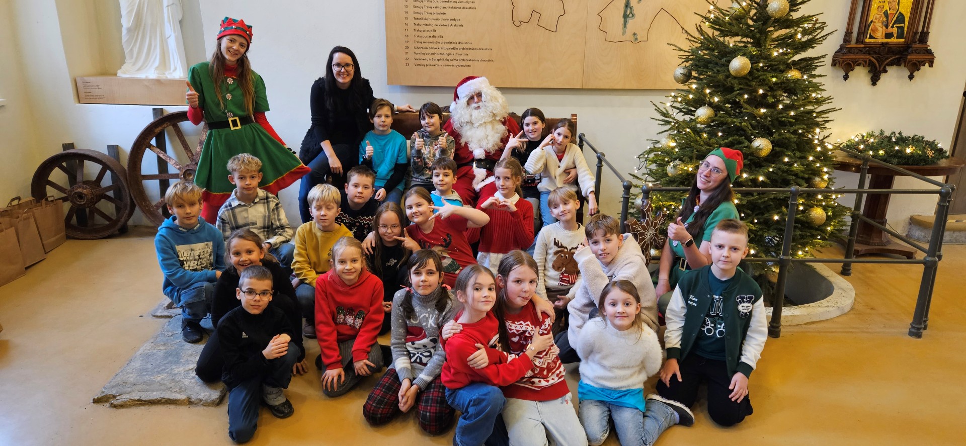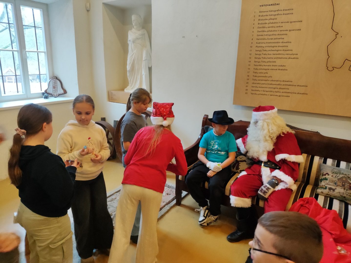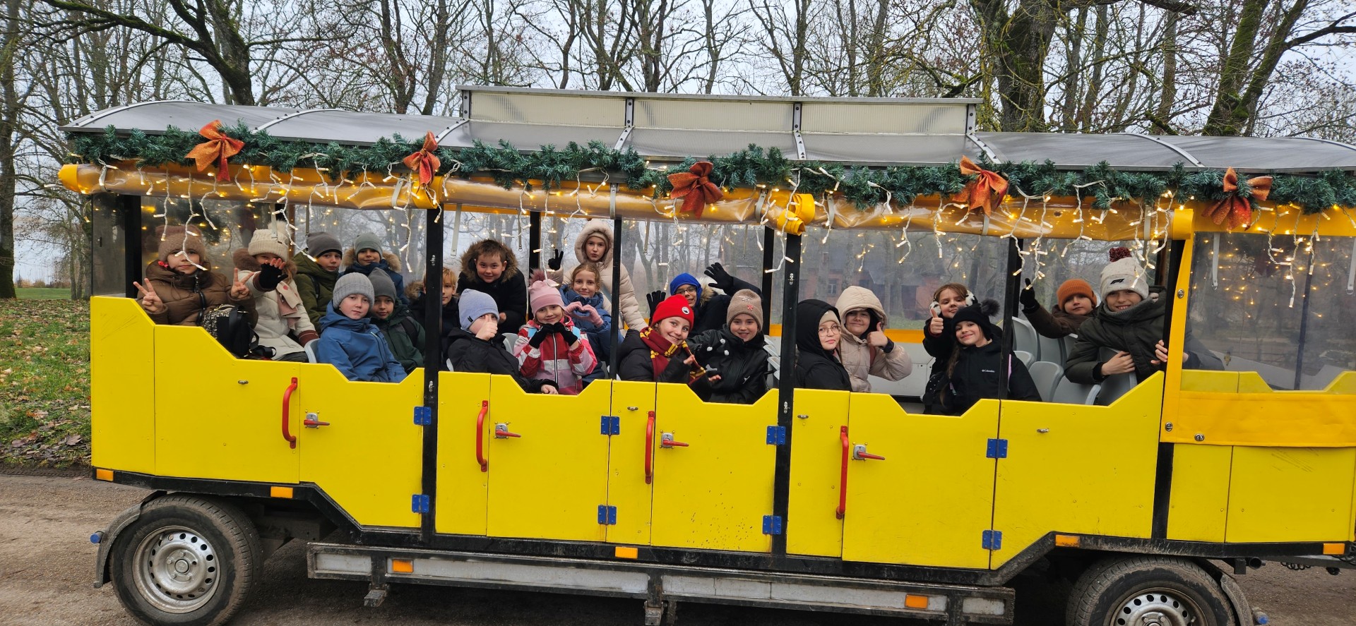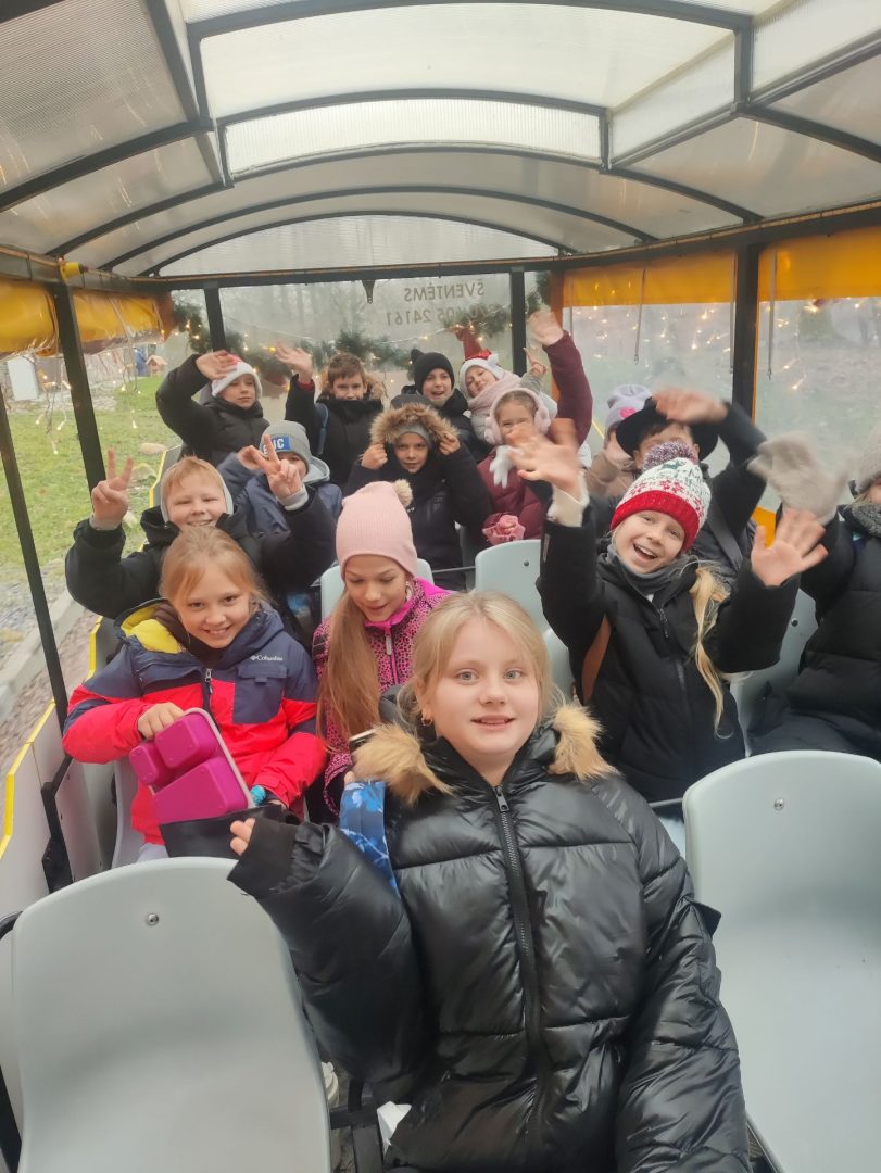 Gruodžio 17d. 3B ir 4B klasių mokiniai vyko Užutrakio dvarą. Tik atvykus mokiniai susėdo į Kalėdinį traukinuką, kuris pavežiojo dvaro rūmų teritorijoje.