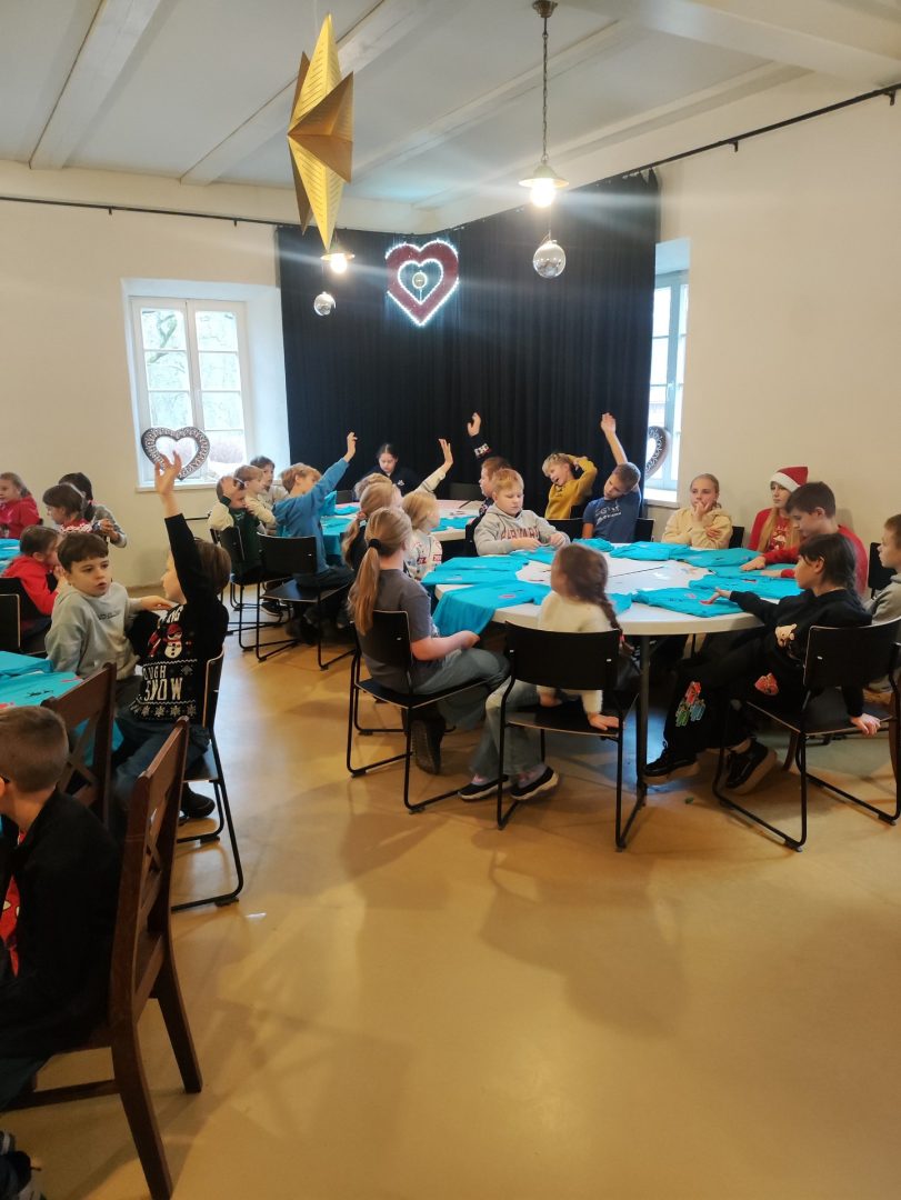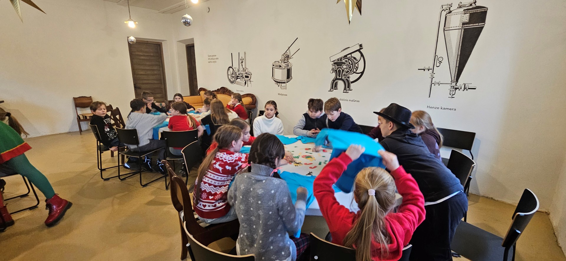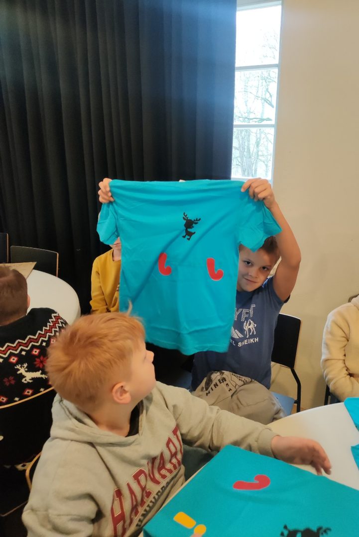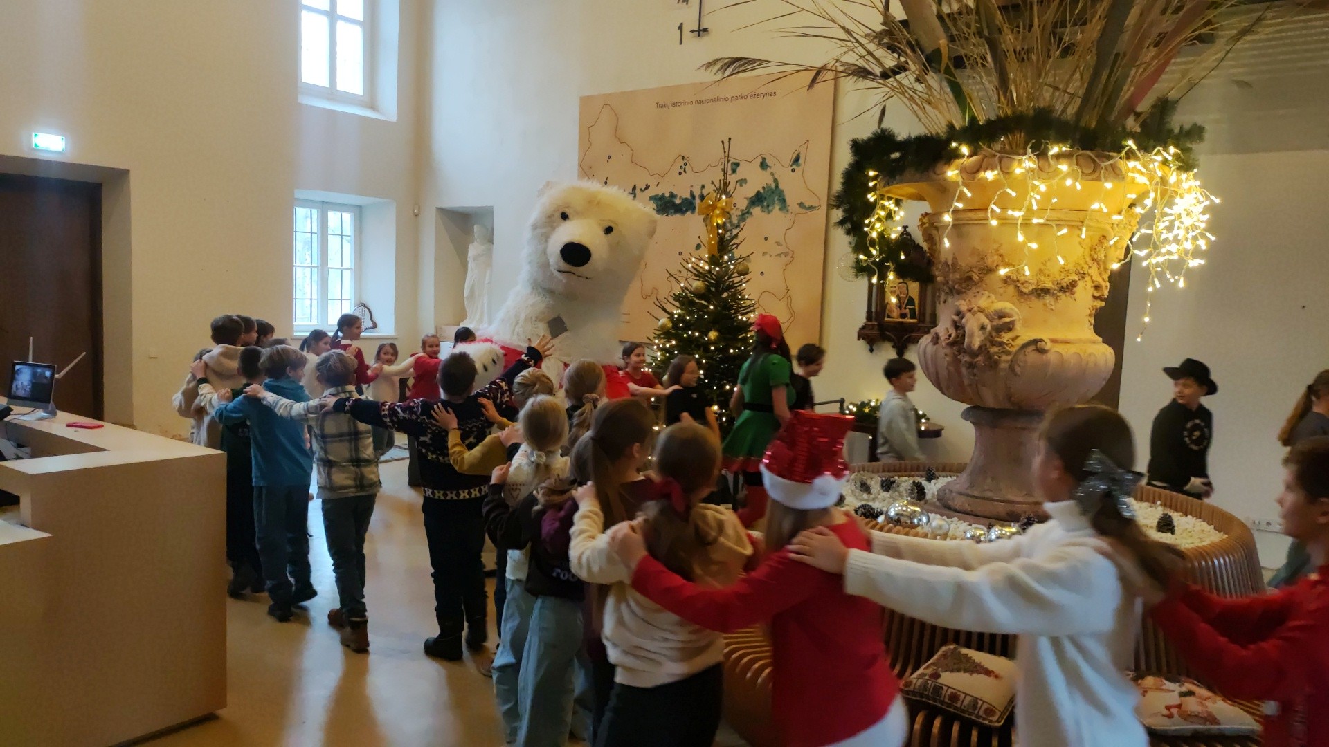 Užėjus į dvaro vidų mokinius pasitiko milžiniška balta meška su kuria linksmai pašoko. Po aktyvių šokių mokiniai kibo į darbus – dekoravo marškinėlius su pasirinktais paveiksliukais, jiems į pagalbą atskubėjo Elfai.