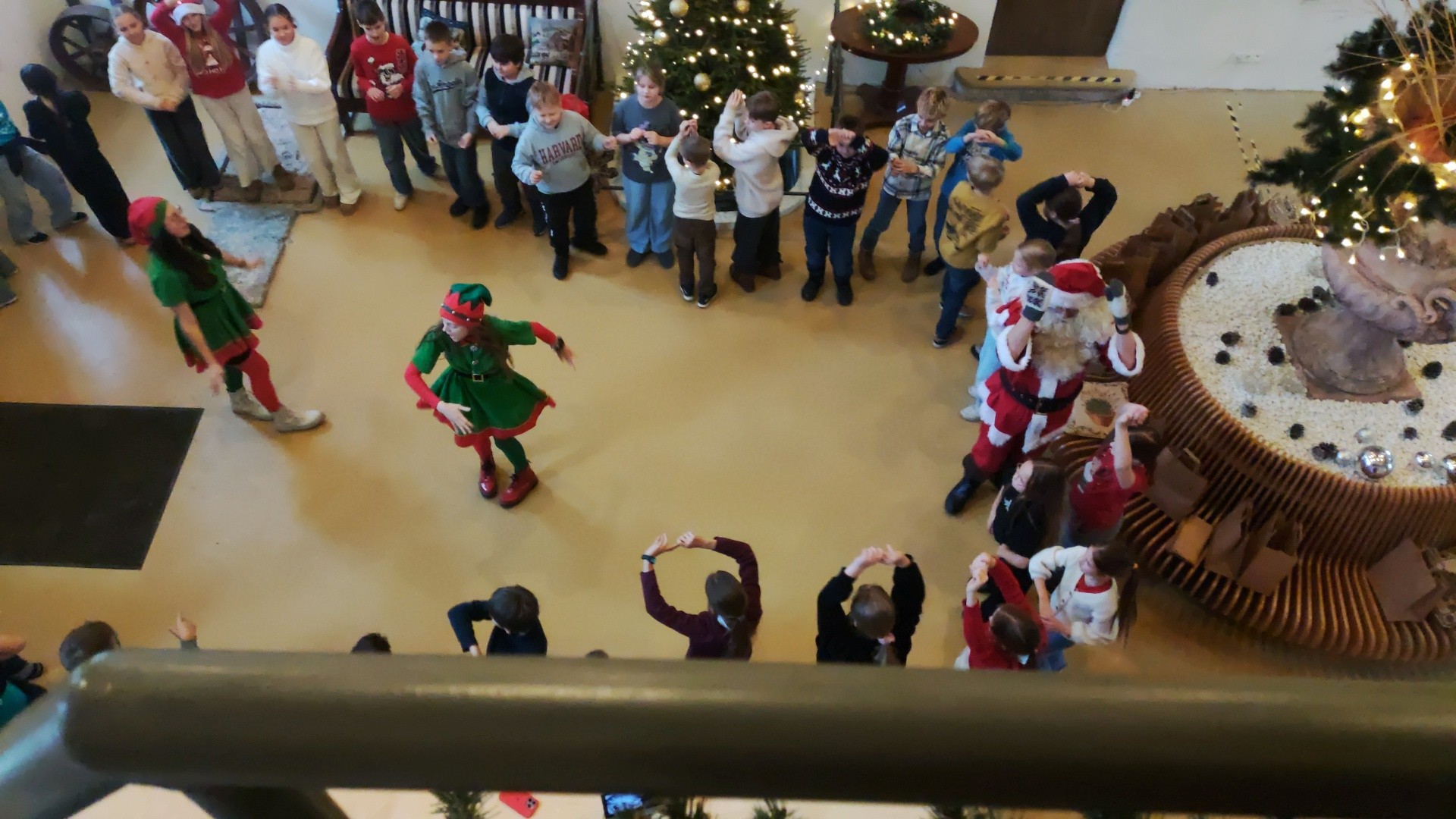Vaikai Kalėdų senelį ir Elfus nustebino bendru, šokio pamokose išmoktu, šokiu „Jingle Bells“, kurį visi drauge sušoko atsisveikinat.