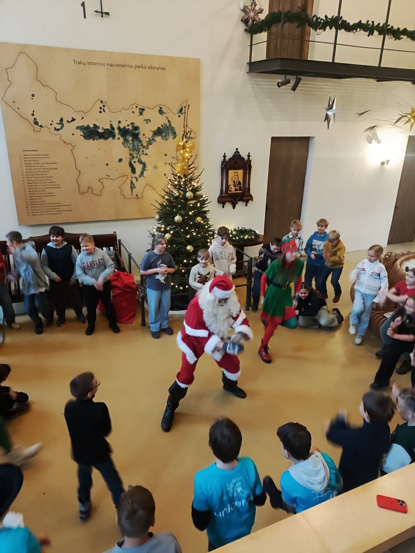 Mokinius taip pat pradžiugino Kalėdų senelis su aktyviais šokiais bei dovanomis!