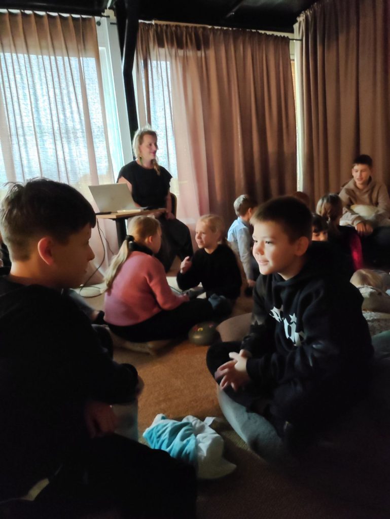 Iš pradžių muzikos ritmu iškratėme susikaupusias emocijas, po to patogiai įsitaisę kalbėjome apie emocijas, kokių jų būna, kaip jas atpažinti, ką daryti, kaip pyksti? Atlikome įvairius pratimus, kurie padeda išleisti nemalonias emocijas ir pasijusti geriau.