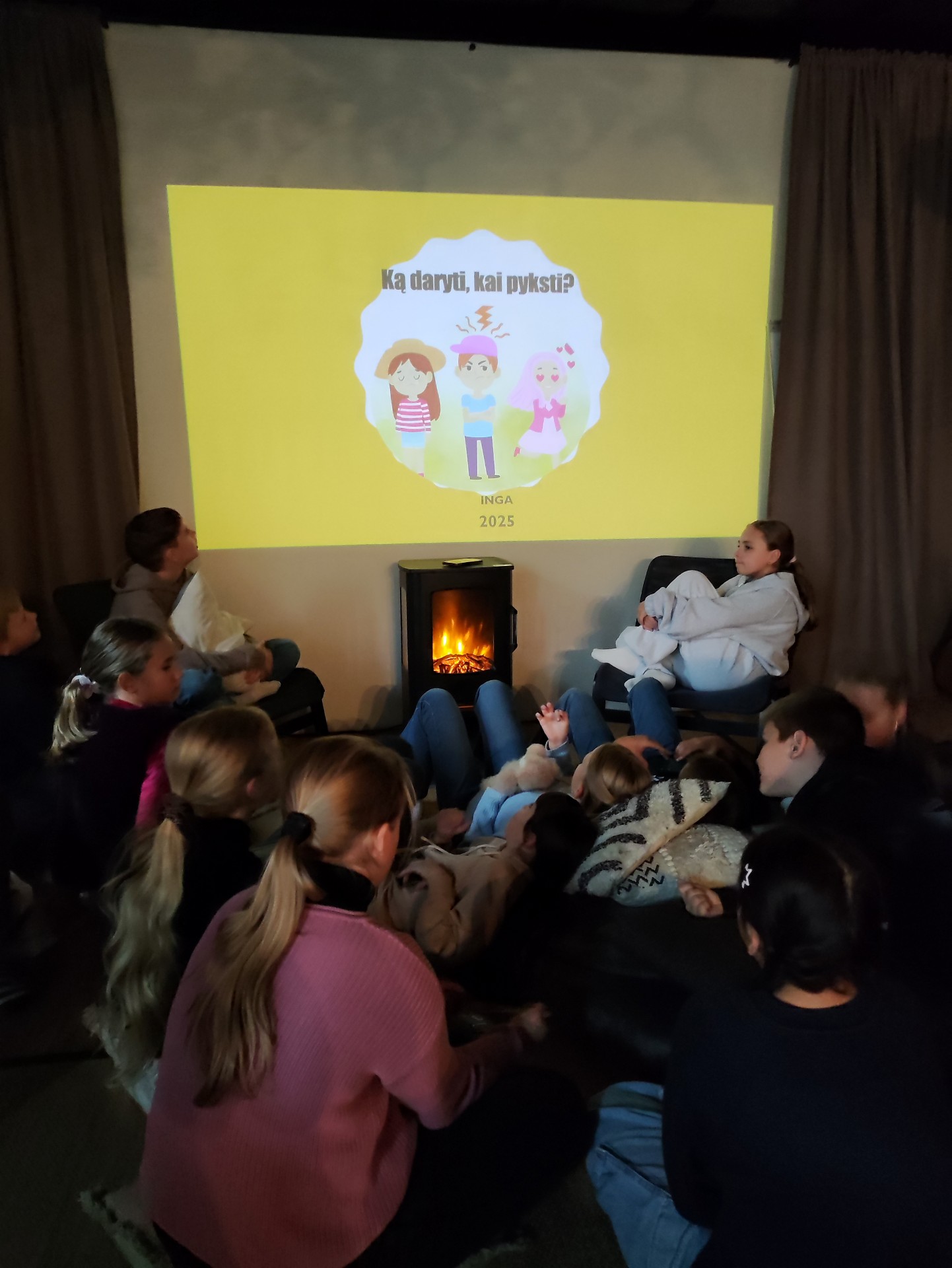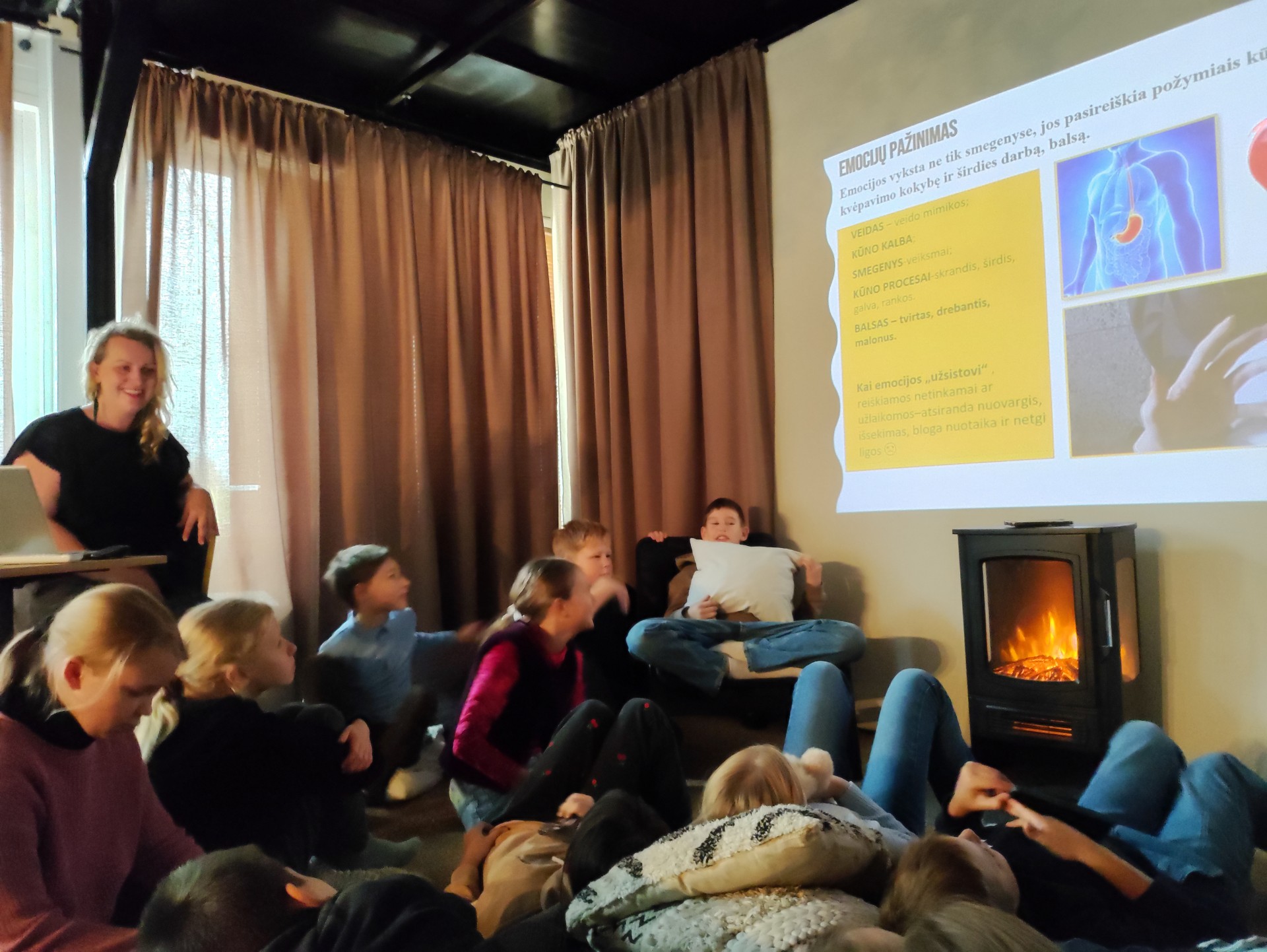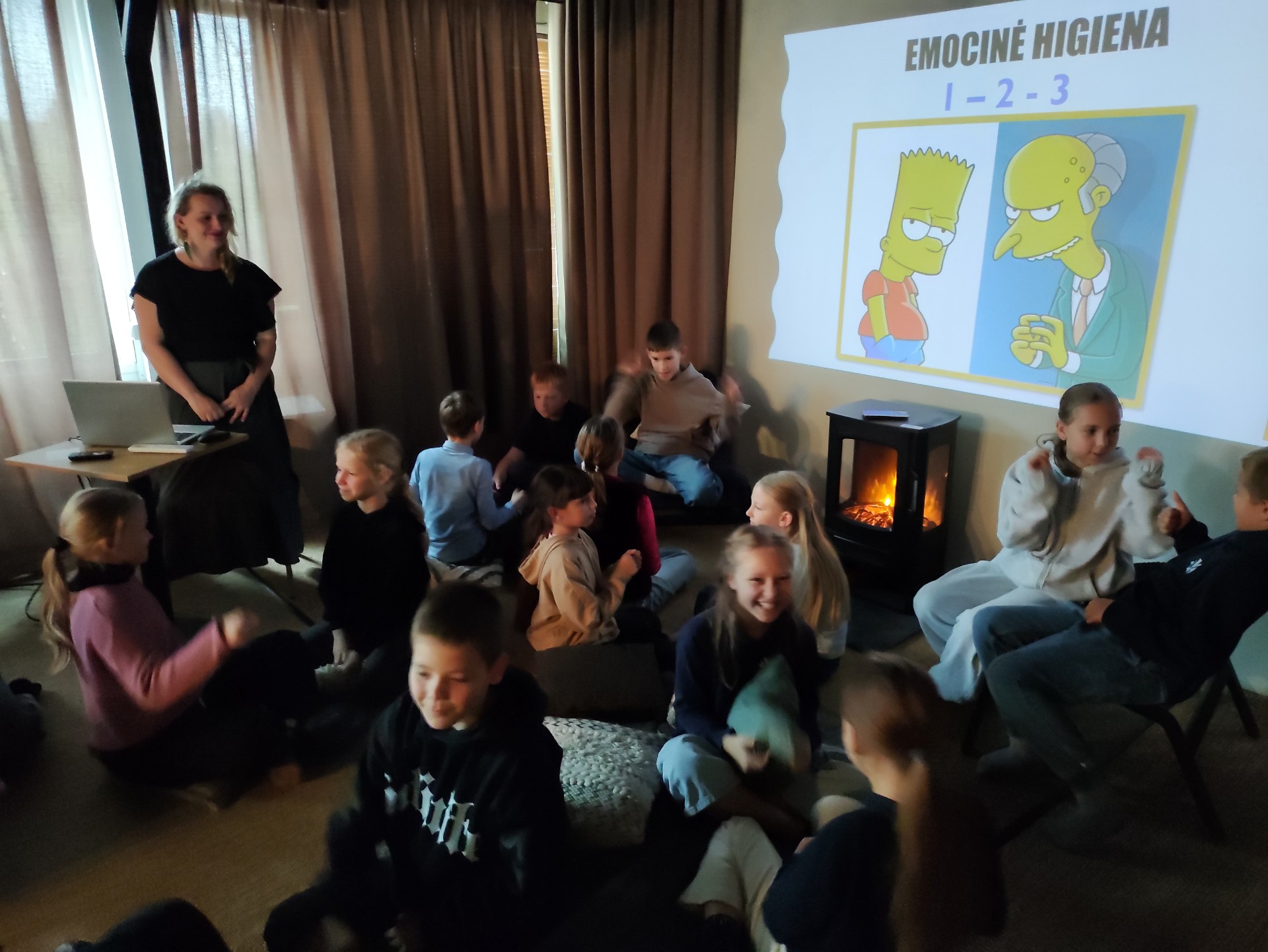 Iš pradžių muzikos ritmu iškratėme susikaupusias emocijas, po to patogiai įsitaisę kalbėjome apie emocijas, kokių jų būna, kaip jas atpažinti, ką daryti, kaip pyksti? Atlikome įvairius pratimus, kurie padeda išleisti nemalonias emocijas ir pasijusti geriau.