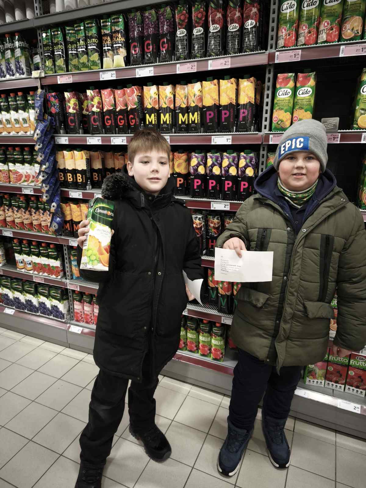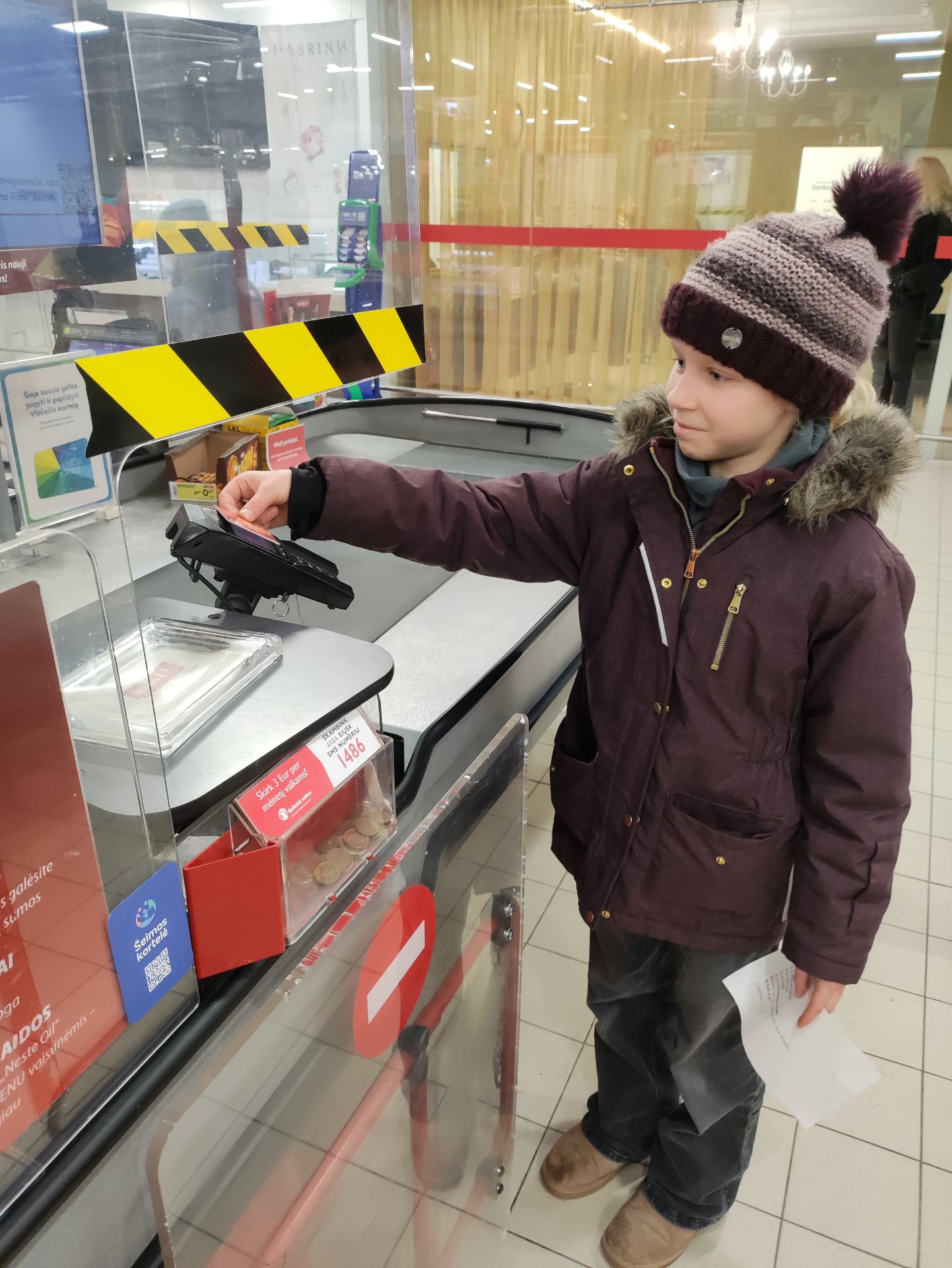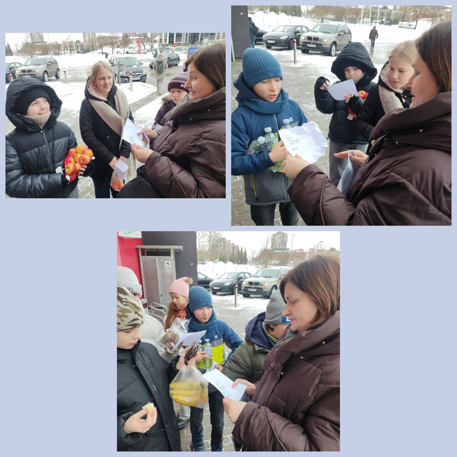 4B klasės mokiniai, kartu su anglų kalbos mokytoja Jolanta ir klasės mokytoja Edita keliavo iki artimiausios parduotuvės. Vyko integruotos anglų kalbos ir matematikos pamokos. Anglų kalbos mokytoja kiekvienam mokiniui išdalino angliškas mįsles. Jas mokiniai turėjo įminti, parduotuvėje surasti tą daiktą ir jį nusipirkti (arba nusifotografuoti), bet pirkti buvo žymiai įdomiau. Pirkinys turėjo kainuoti iki 2 eurų. Mokiniai mokėsi pasverti kai kurias prekes, apskaičiuoti, kiek pirkinys, kainuos, kai žino prekės kilogramo kainą. Mokiniai parduotuvėje pirkdama lygino kainas, stebėjo, kuri kainuoja pigiau, kuri brangesnė.
