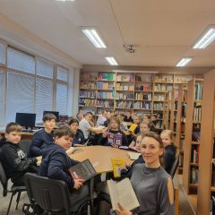 Vasario ir kovo mėnesį vyko skaitymo popietės bibliotekoje, kurių metu mokiniai ekrane skaitė el. skaityklėje vyturys J. Degutytės „Pelėdžiuko sapną“, L. Gutausko „Auksinė šiaudų šviesą“. Taip pat, skaitėme rašytojo Vytauto Račicko mokyklai padovanotas ir jo paties parašytas knygeles „Šeštoji Skaityti visą