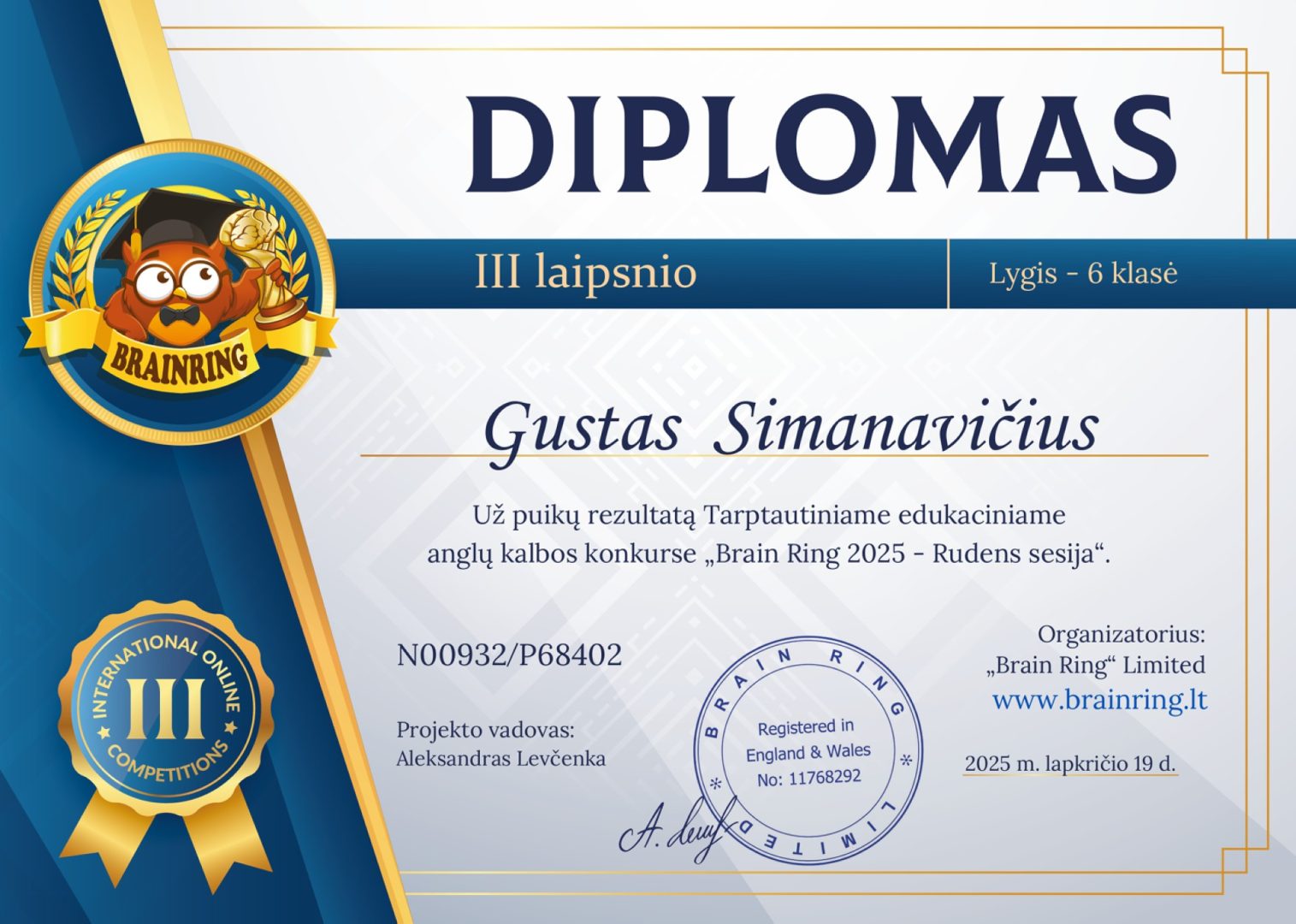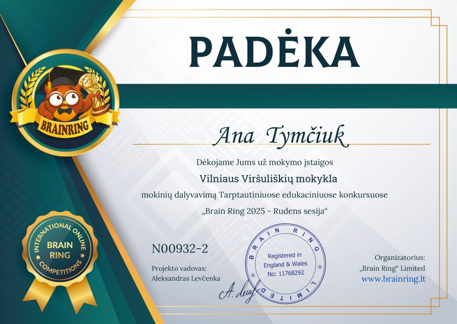 Šiais metais Vilniaus Viršuliškių mokiniai turėjo galimybę sudalyvauti „Brain Ring“ olimpiadoje. Mokinių dalyvavimas šiame konkurse buvo vertinga patirtis. Tai ne tik žinių patikrinimas, bet ir galimybė augti kaip asmenybei, ugdyti kompetencijas bei pasiruošti ateities iššūkiams. Kalbų mokymasis tampa raktu į platesnį pasaulio pažinimą, o aktyvus įsitraukimas – stiprios ir vieningos mokyklos bendruomenės pagrindas.