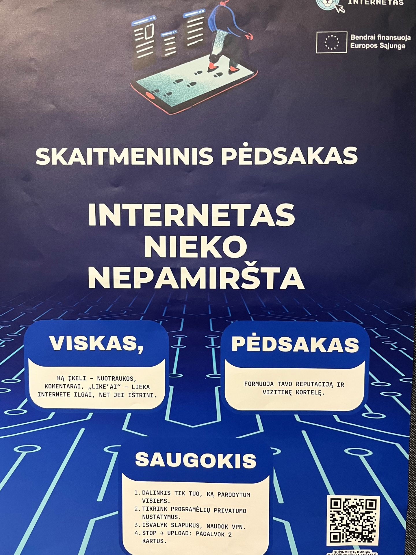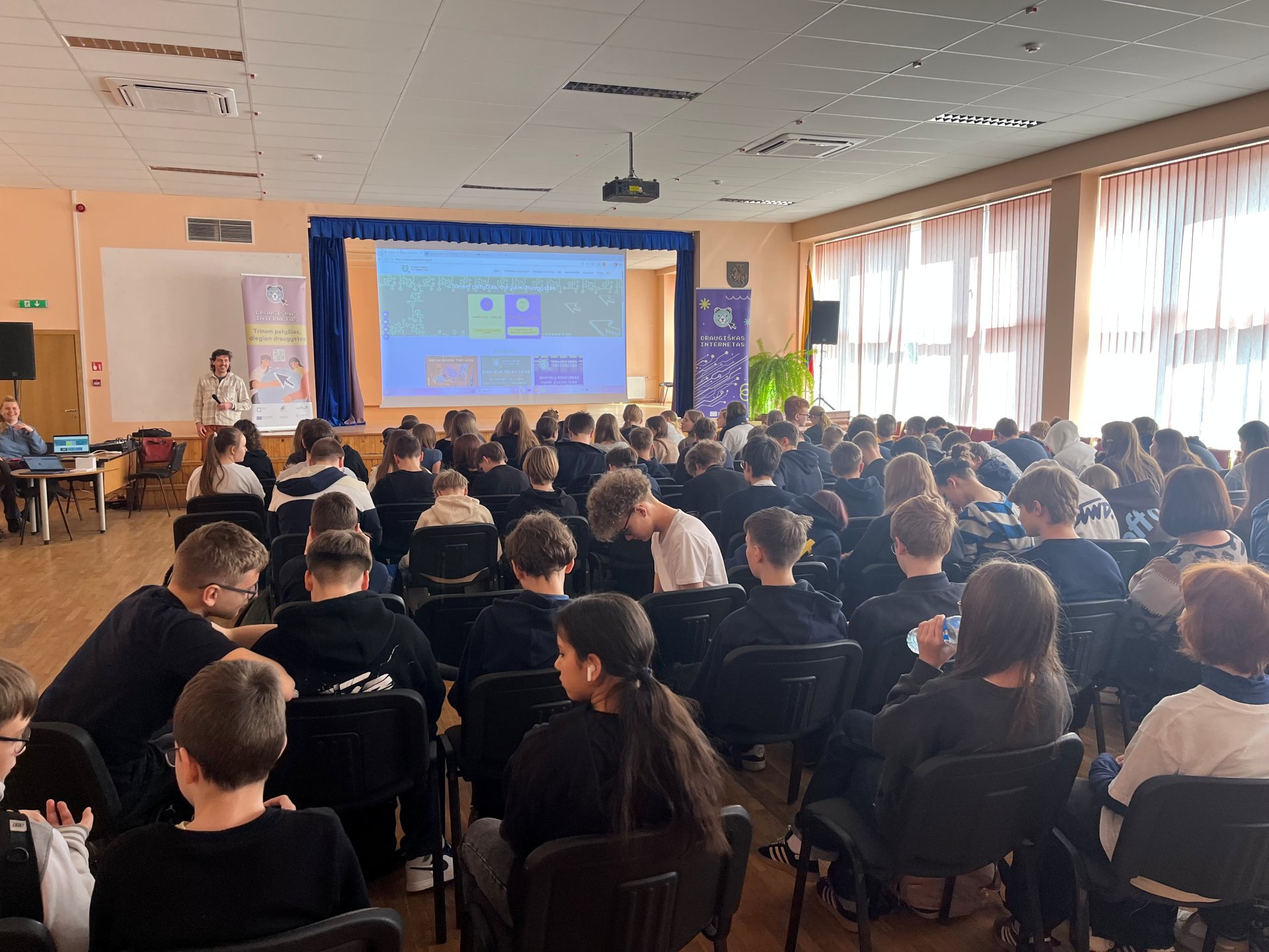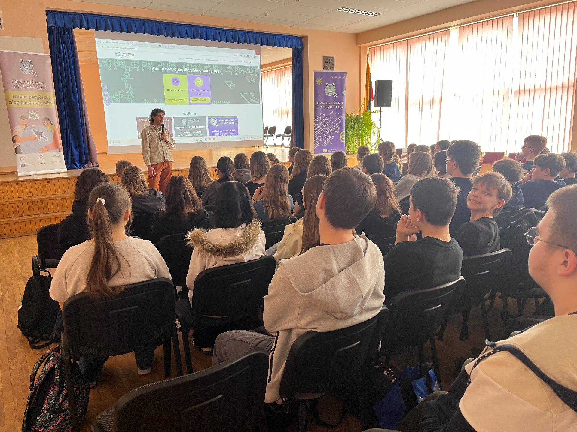 Kovo 20 d. mūsų mokykloje lankėsi Lietuvos neformaliojo švietimo agentūros atstovai ir savanoriai – pristatė itin aktualią šiandienos temą – saugų elgesį internete. Susitikimo metu buvo kalbama apie tai, kaip atsakingai naudotis skaitmeninėmis technologijomis ir kokių pavojų galima išvengti, jei laikomasi tam tikrų taisyklių.
