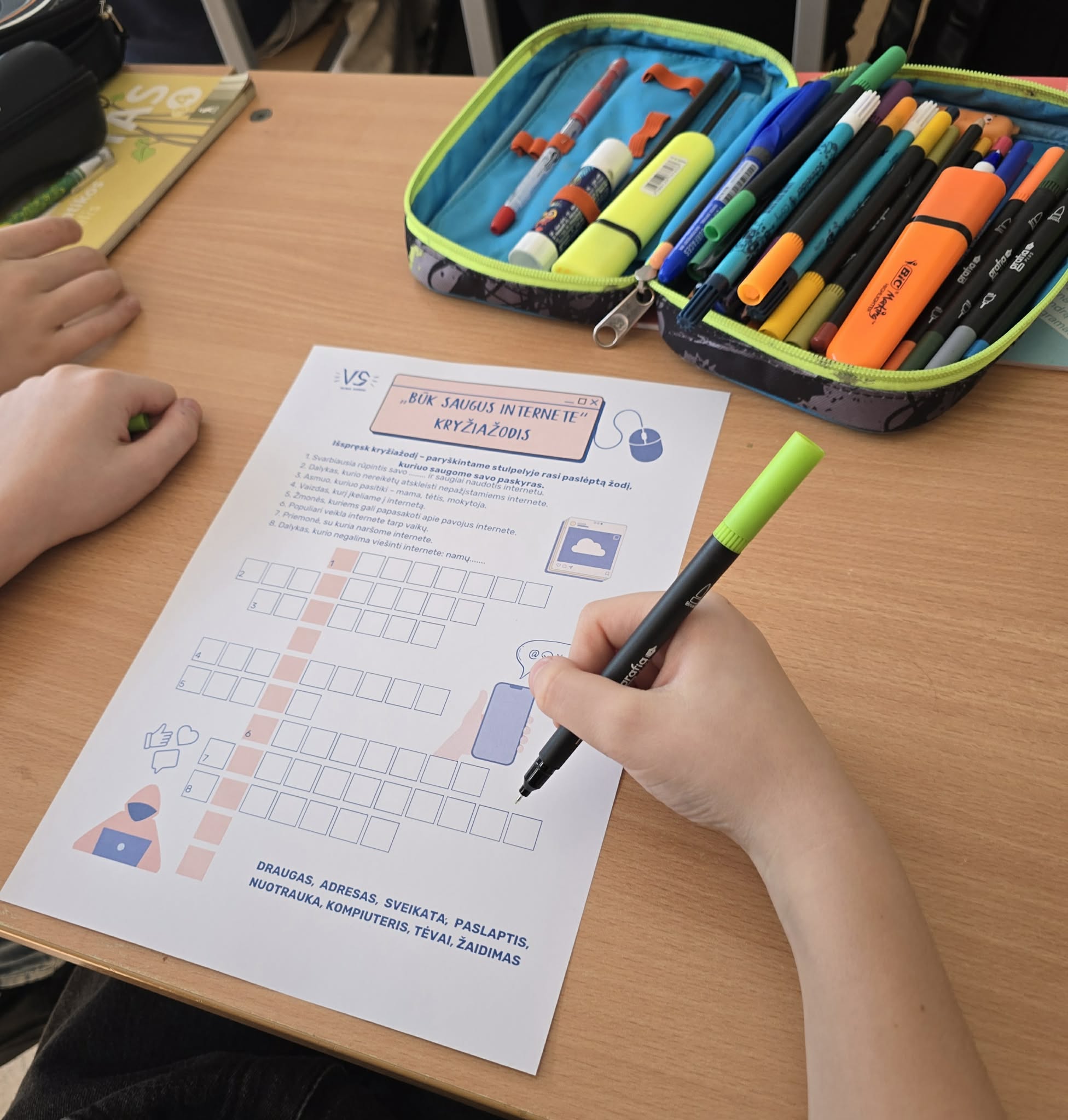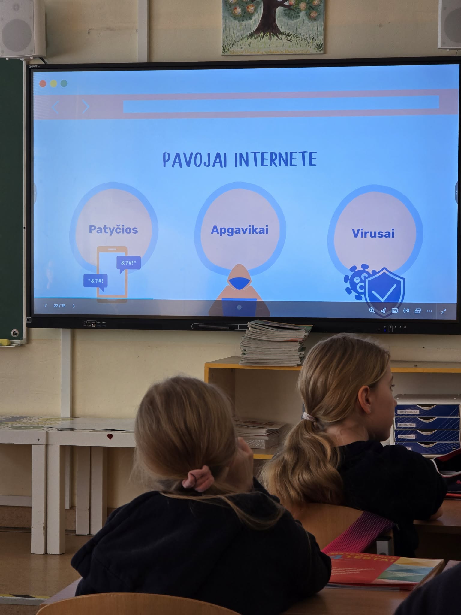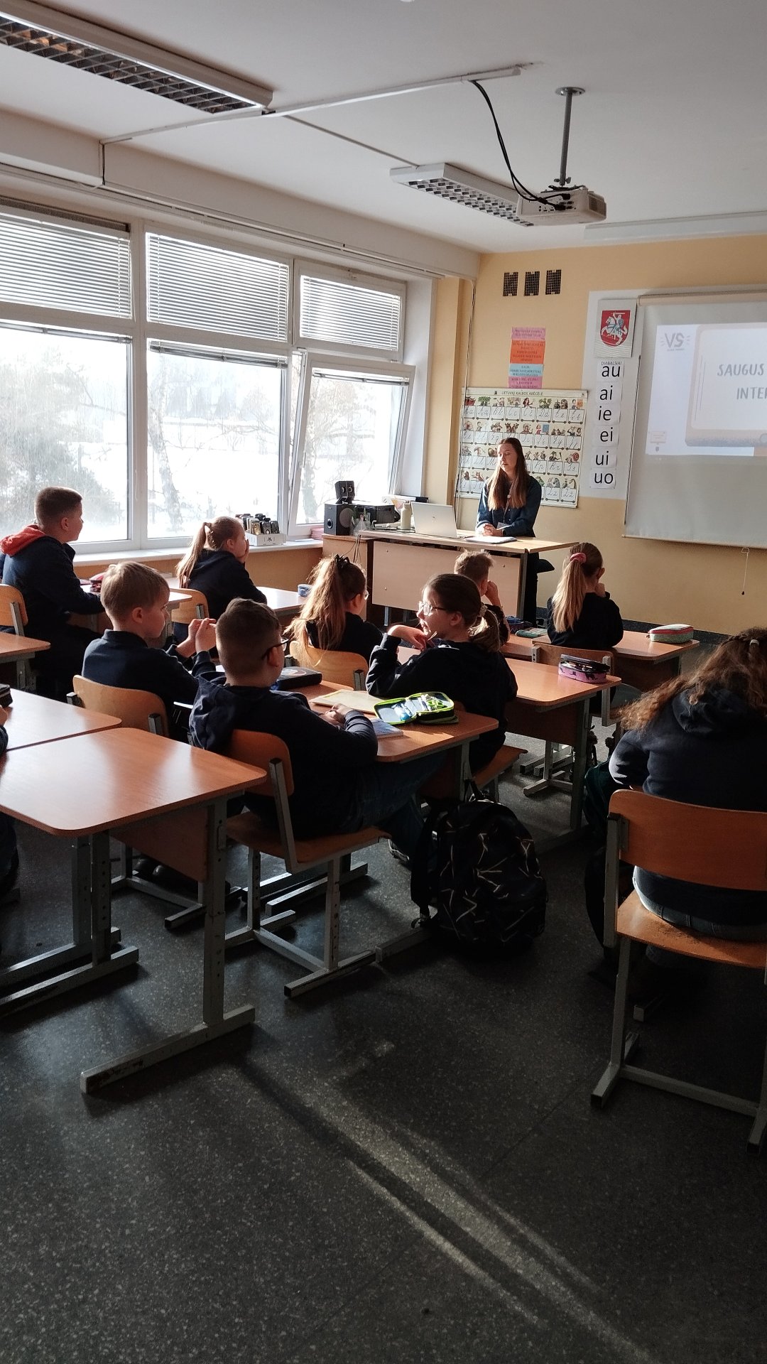 Edukacijos metu 5C/6D, 4A ir 4C klasės žaismingai ir smagiai susipažino, kaip saugiai naudotis internetu ir kompiuteriu. Mokėsi: ką reiškia būti priklausomam nuo ekranų ir kaip to išvengti; kaip saugiai elgtis internete; paprastų būdų, kaip riboti laiką prie ekrano ir daryti pertraukas; kaip atpažinti pavojingą elgesį ir žinoti, kur kreiptis pagalbos.