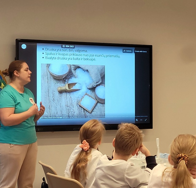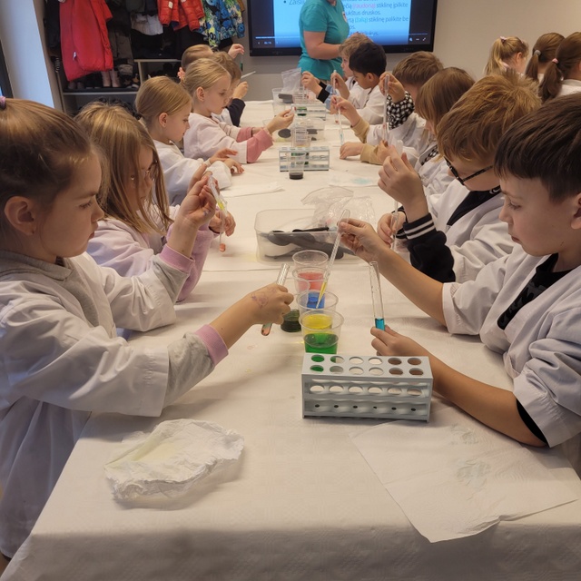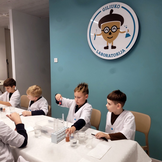2C klasės mokiniai lapkričio 14 d. lankėsi „Giliuko laboratorijoje“, kurioje klausėsi įdomių istorinių pasakojimų apie druskos reikšmę. Druska – tai daugiau nei tik maisto prieskonis. Ji yra civilizacijos istorijos dalis, simbolizuojanti galios, prekybos ir kultūrų mainus per šimtmečius. Susipažinę su druskos kelione per laikus – nuo seniausių laikų, kai druska buvo viena svarbiausių prekių, iki šiuolaikinės chemijos laboratorijų, mokiniai atliko eksperimentų, tyrinėjo druskos savybes, stebėjo, kaip ji tirpsta, ir gamino spalvotą druską.