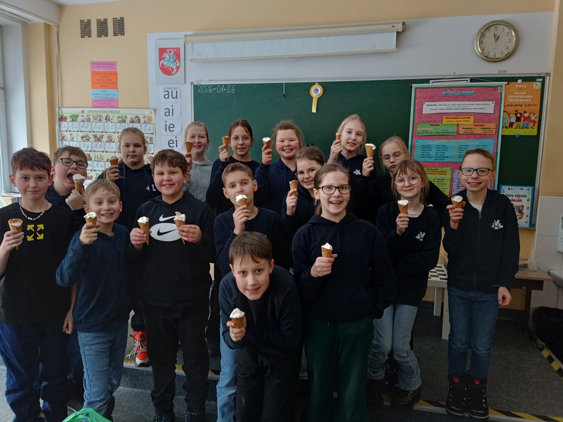 4A klasės mokiniai per technologijos pamoką gamino ledus. Ir jiems pavyko! Užtruko su maišymu, bet rezultatas – super! Nepamirškit paberti druskos ant sniego, kad šaldytų greičiau! Gavosi labai skanūs. Išbandykit!