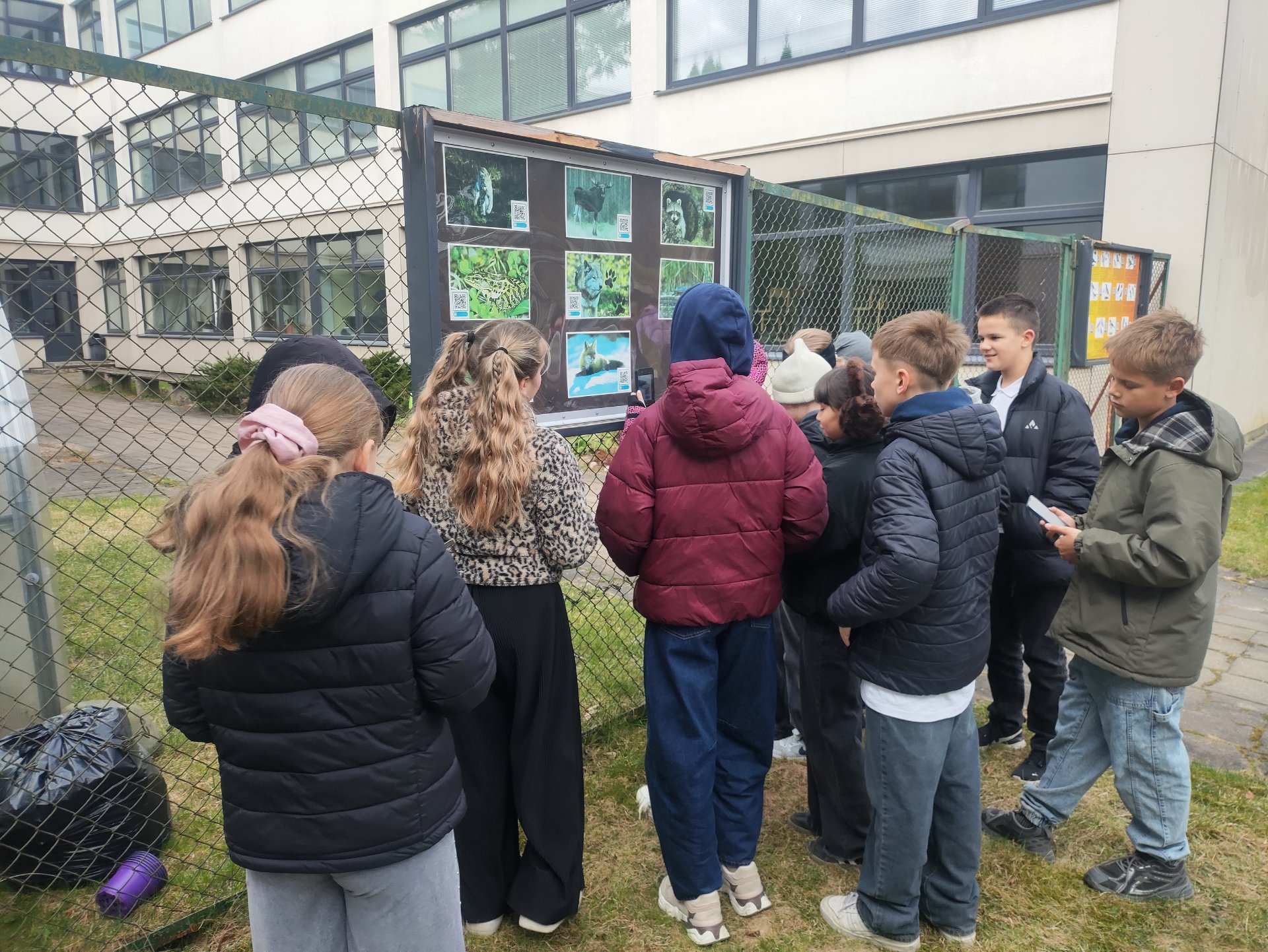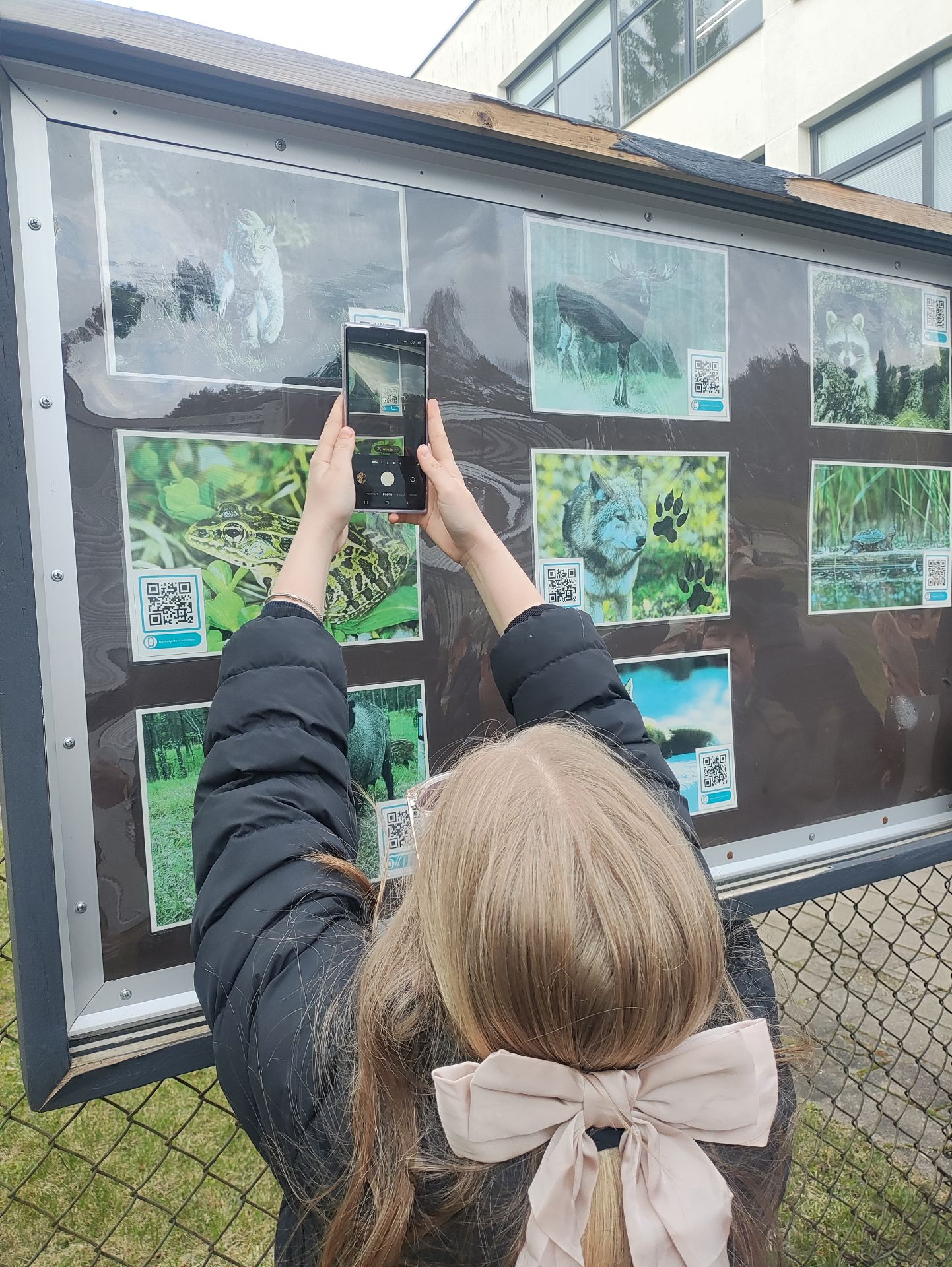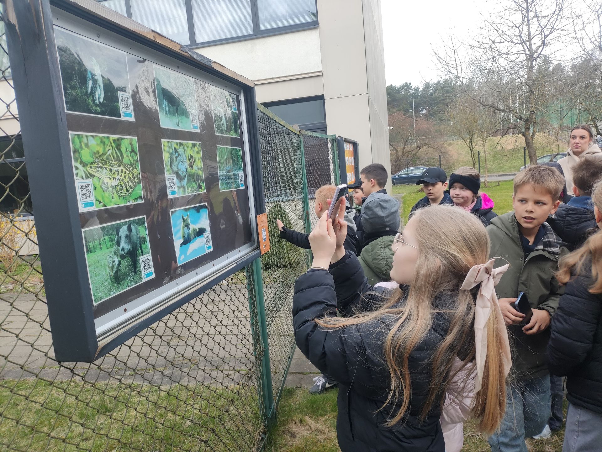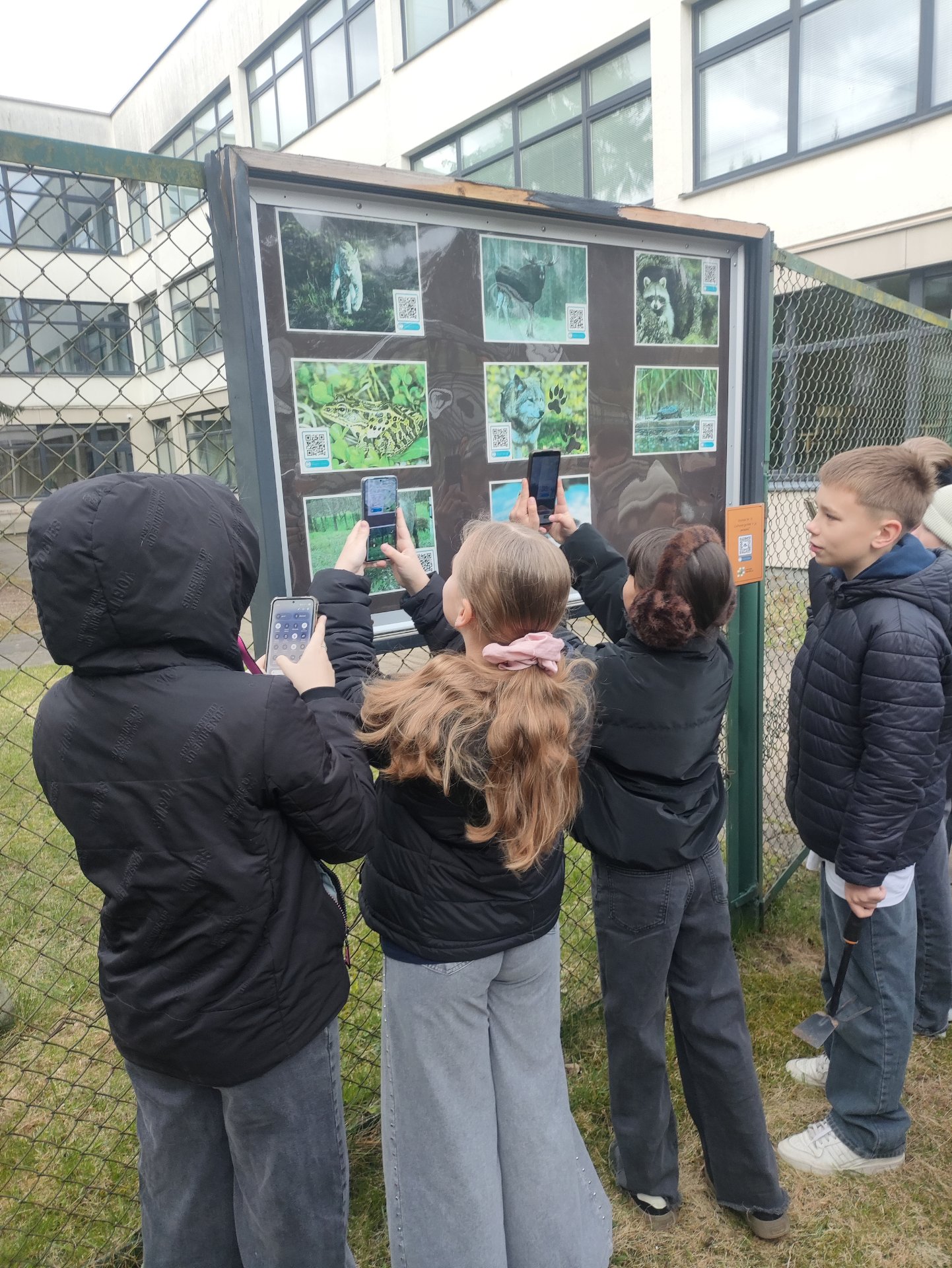 4B klasės mokiniai keliauja į mokyklos kiemą ir su išmaniaisiais įrenginiais nuskanuoja QR kodus prie Stotelės Nr. 11 „Lietuvos gyvūnai ir jų pėdsakai“. Pamato įdomią informaciją apie Lietuvoje gyvenančius gyvūnus ir jų paliekamus pėdsakus (pvz. apie šernus, lūšis, vilkus, briedžius, lapes ir kitus gyvūnus). Grįžę į klasę pasidalina įspūdžiais. Pateikia informaciją savo klasės draugams.