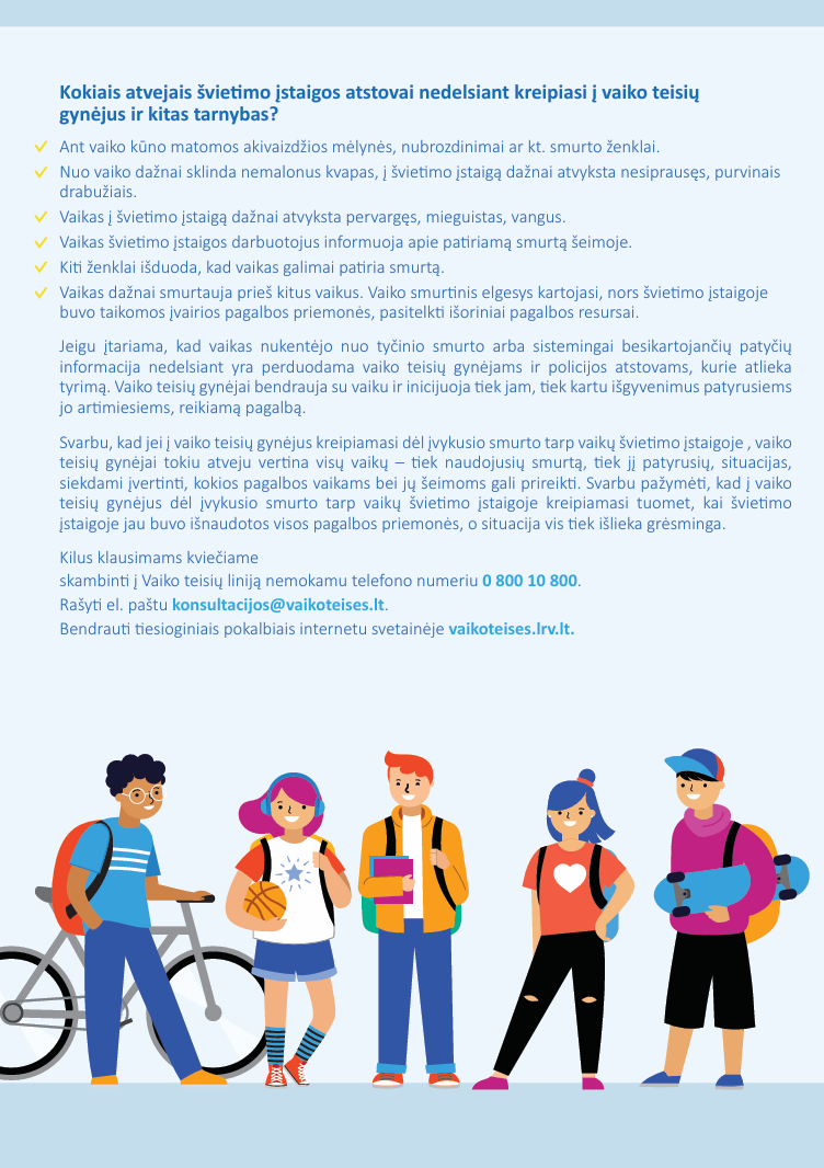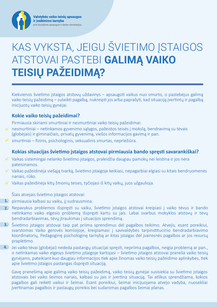 Kas vyksta, jeigu švietimo įstaigos atstovai pastebi galimą vaiko teisių pažeidimą?