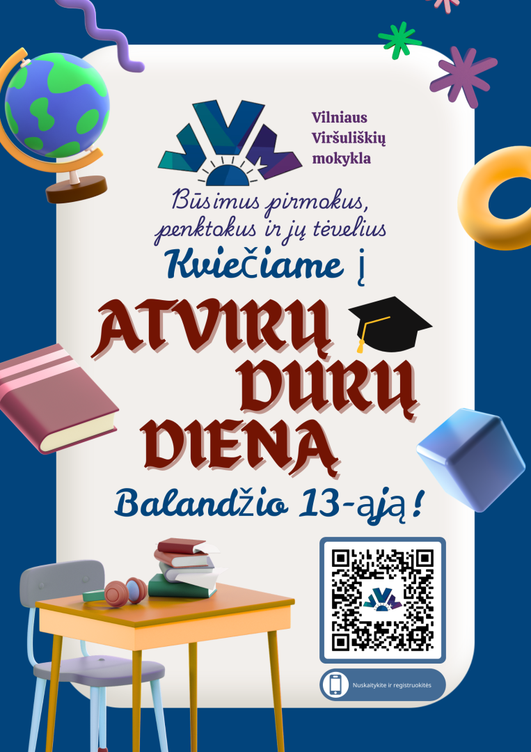 Vilniaus Viršuliškių mokyklos atvirų durų dienos programa ir dalyvių registracija