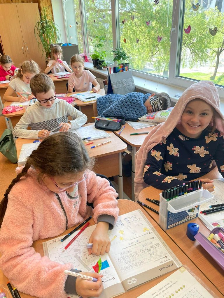 Šiais mokslo metais Mokinių taryba jau paskutinį kartą skelbė linksmojo penktadienio akciją. Šį kartą tai buvo pižamų vakarėlio tema! Mokiniai į mokyklą atėjo apsirengę pižamomis, šlepetėmis, chalatais, atsinešė pagalvių ir kitų miegui skirtų daiktų. Mokiniai buvo labai išradingi!
