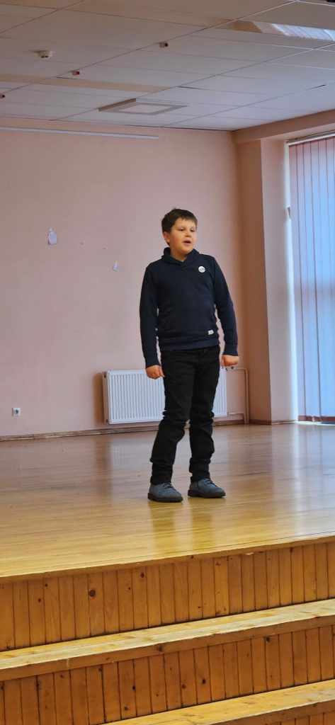 Lapkričio 10 d. mokyklos aktų salėje vyko Vilniaus miesto 1 – 4 klasių mokinių meninio skaitymo konkurso „Ant žodžio sparnų” I turas. Šiame konkurse dalyvavo 12 skaitovų iš 1 – 4 klasių. Jie raiškiai deklamavo Lietuvos rašytojų poezijos kūrinius laisvai pasirinktomis temomis. Iš 1 – 2 klasių mokinių 1 vietą laimėjo 2C klasės mokinė Gustė Seniūnaitė. Iš 3 – 4 klasių mokinių 1 vietą laimėjo 4D klasės mokinė Maja Pociejūtė. Visi meninio skaitymo konkurso „Ant žodžio sparnų” skaitovai buvo apdovanoti padėkos raštais. Dėkojame visiems 1 – 4 klasių pradinio ugdymo skaitovams ir jų mokytojoms.