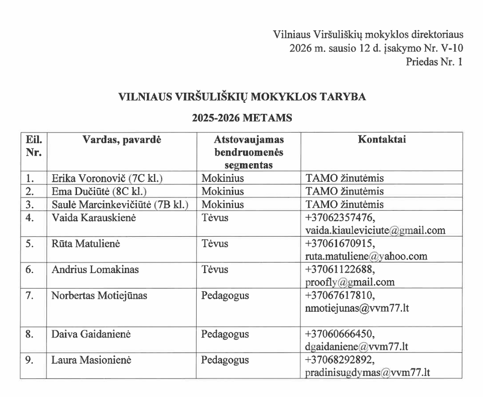 - Teikia siūlymų Mokyklos direktoriui dėl Mokyklos nuostatų pakeitimo ar papildymo, Mokyklos vidaus struktūros tobulinimo;
