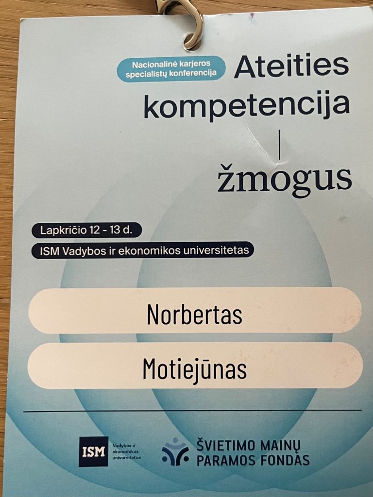 Lapkričio 12-13 dienomis, mūsų mokyklos karjeros specialistas Norbertas Motiejūnas dalyvavo nacionalinėje karjeros specialistų konferencijoje „Ateities kompetencija – žmogus“. Konferencija vyko ISM Vadybos ir ekonomikos universitete, Vilniuje.