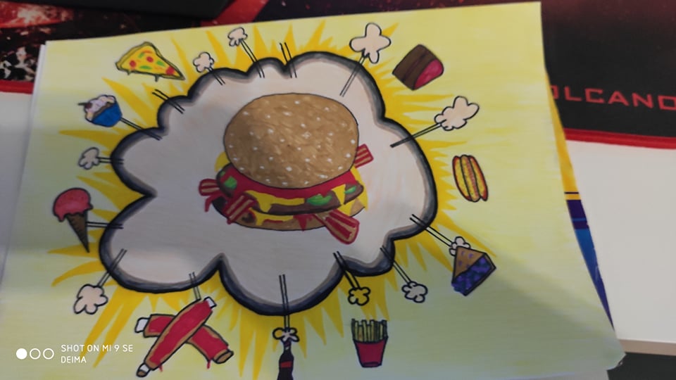 Integruotoje su sveikatos ir lytiškumo ugdymo bei rengimo šeimai programa dailės pamokoje mokyklos 6 klasių mokiniai piešė piešinius, kuriais norėjo visiems priminti, koks maistas nėra sveikas.