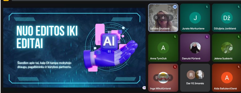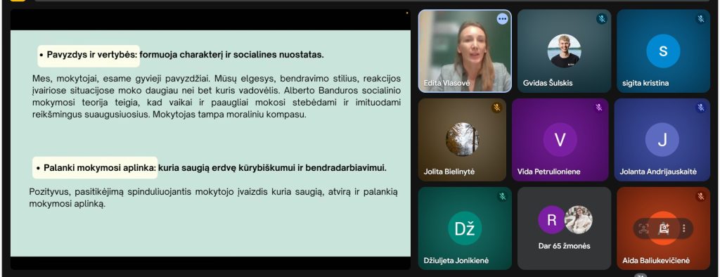 Pranešėjai kalbėjo apie dirbtinio intelekto taikymą ugdyme, emocinės gerovės stiprinimą mokykloje, įtraukties metodus, komandinio darbo svarbą bei kūrybiškas pamokos formas.