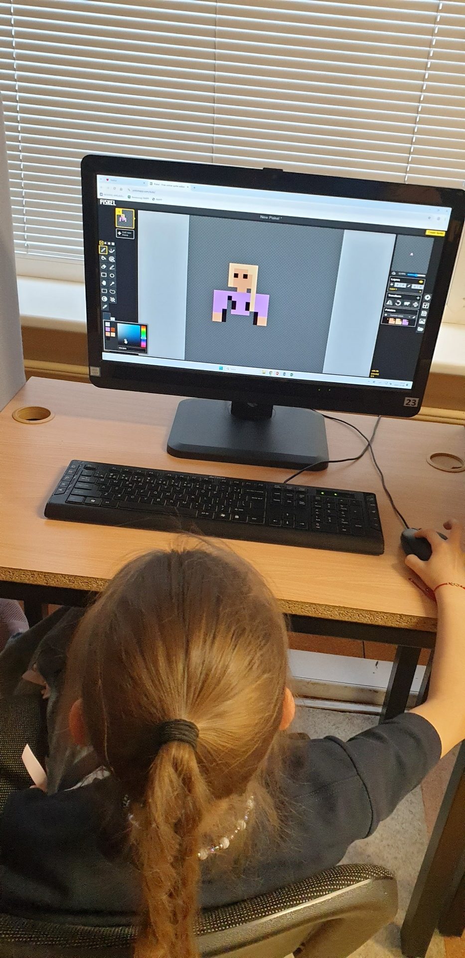 3B klasės mokiniai per informatikos pamoką mokosi kurti atviruką su pikselinės grafikos įrankiu Piskel, kuris leidžia piešiniams atgyti. Jaunesni mokiniai gali kurti vieno kadro atviruką, o vyresni – kelių kadrų animuotą atviruką, kurį vėliau galima išsaugoti GIF formatu.