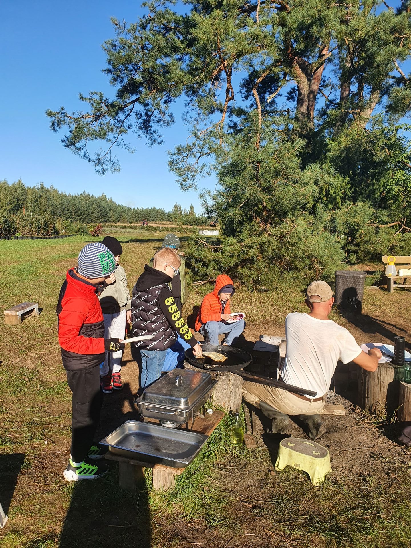 Rugsėjo 26 d. 2B klasės mokiniai vyko į Trakų rajone esantį šilauogių ir levandų ūkį, kur gamtos apsuptyje jų laukė nepamirštami nuotykiai. Mokiniai pagal specialiai šiam ūkiui sukurtą žemėlapį ieškojo pažymėtų punktų, sprendė galvosūkius, atliko užduotis ir rinko paslėptas raides. Žaidimas vyko beveik 3 hektarų plote, todėl tai buvo puiki proga pažinti ūkyje augančius augalus bei aplinkinę laukinę gamtą. Su žiūronais jie stebėjo miškus ir kalbėjosi apie juose gyvenančius gyvūnus. Be to, galėjo tiesiai nuo krūmų ragauti šviežių uogų, pasinerti į levandų laukų kvapus ir grožį. Po aktyvių pramogų visi susirinko prie laužo, kur patys kepė blynus ir gardino juos šio ūkio šilauogių uogiene.
