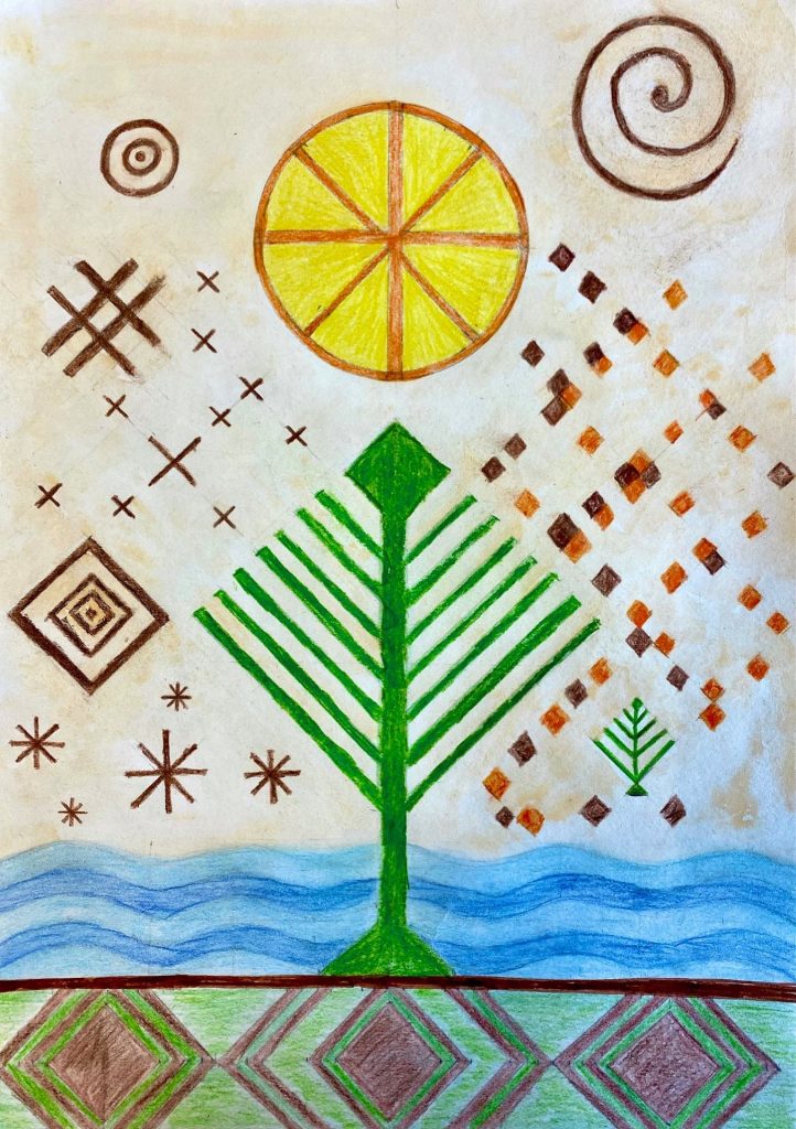 Visą lapkritį dailės būrelio ir 7-8 klasių mokiniai, atsiliepdami į Tarptautinio mokinių meninės kūrybos darbų konkurso „Dzideli dzyvai, Kalėda“ kvietimą ir sąlygas, domėjosi senosios baltų kultūros palikimu, ieškojo ir bandė įprasminti senosios baltų kultūros ženklus, užkoduotus mūsų folklore ir tautosakos labirintuose bei perteikti Advento-Kalėdų laikotarpio nuotaiką. Saviraiškoje naudojo baltų mitologijos ir kultūros simbolius, kurie ne tik puošia daiktus, drabužius ar papuošalus, bet ir veikia kaip apsaugos, dvasinio ryšio ar kosminės harmonijos atspindžiai.