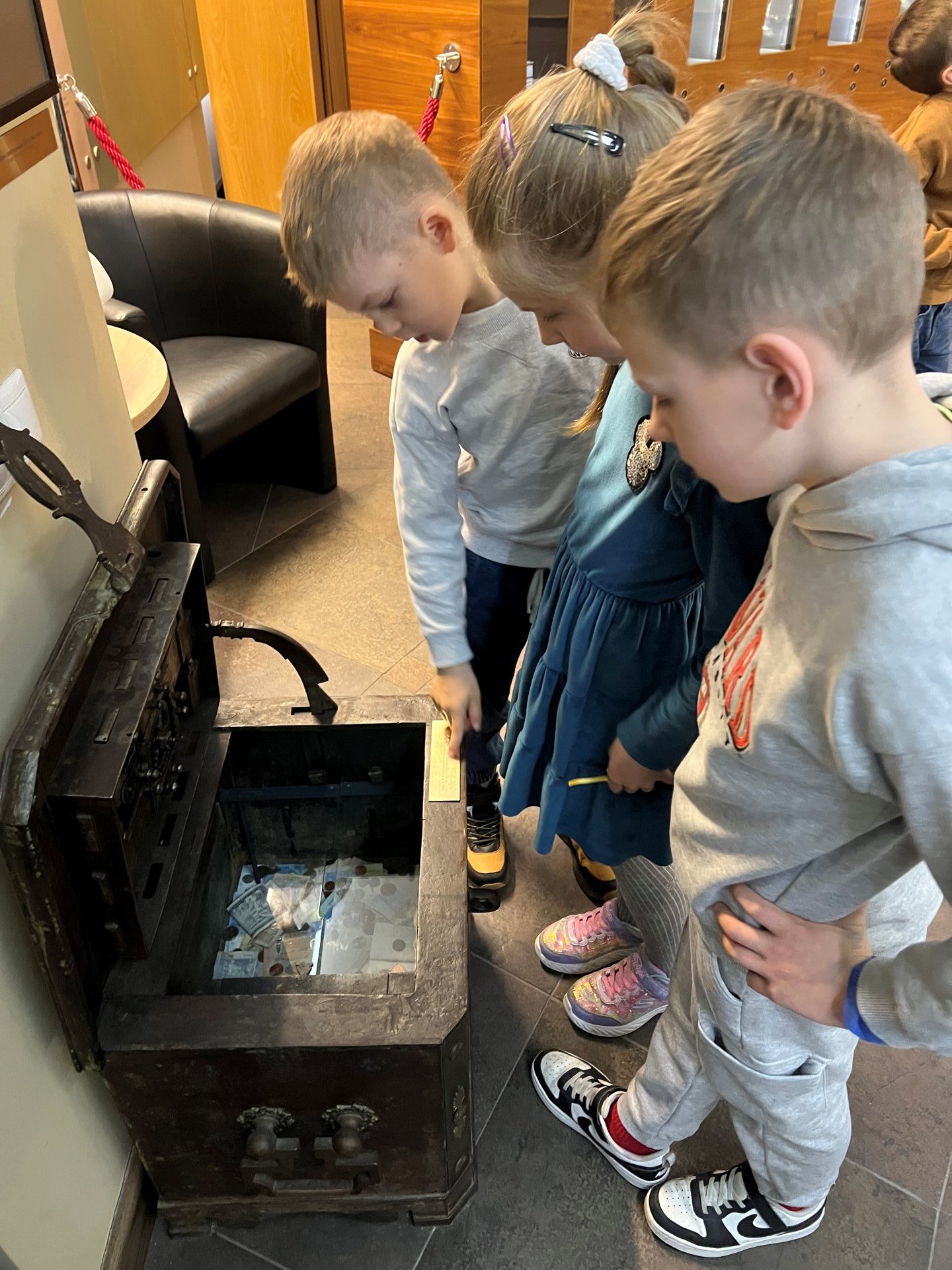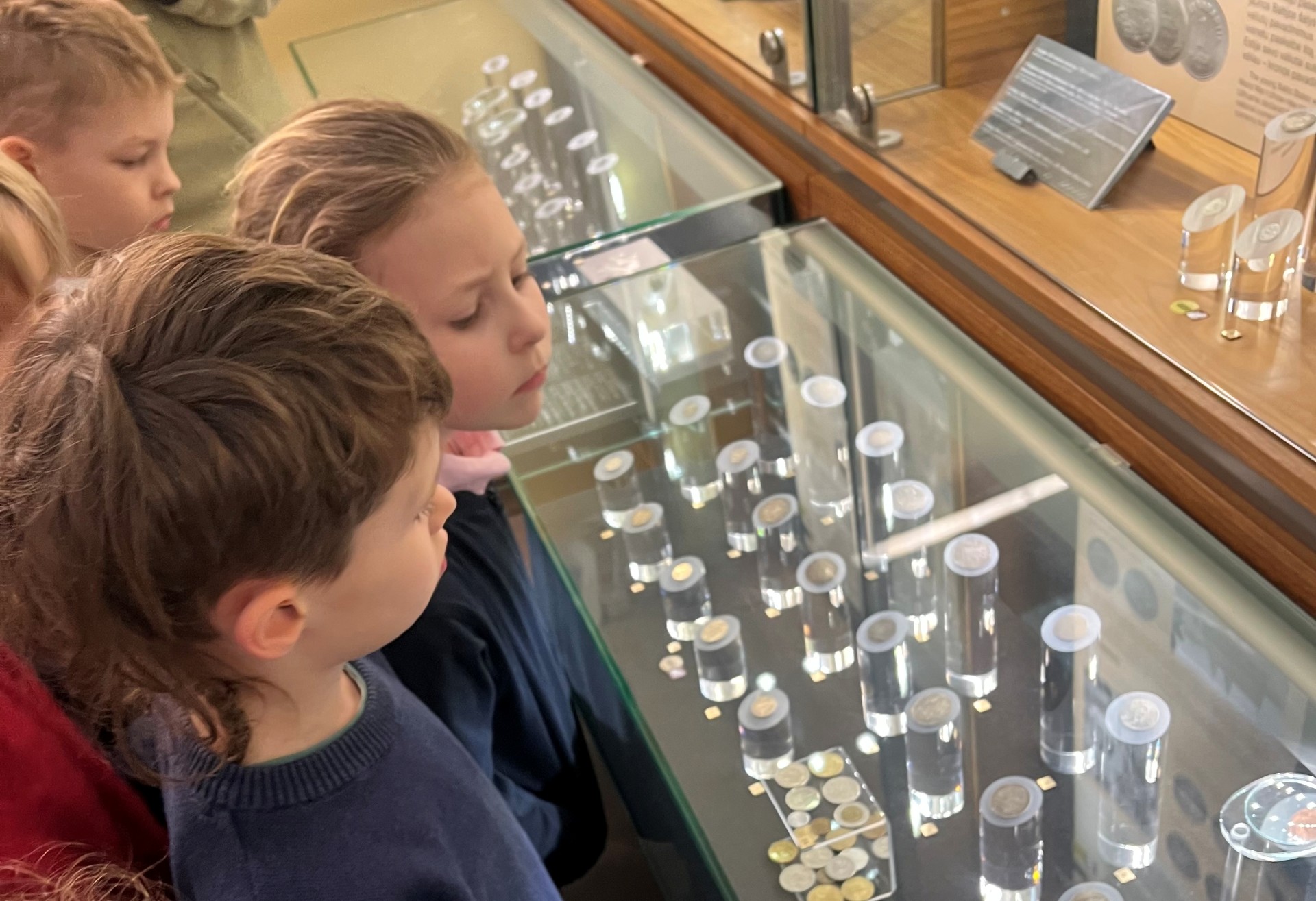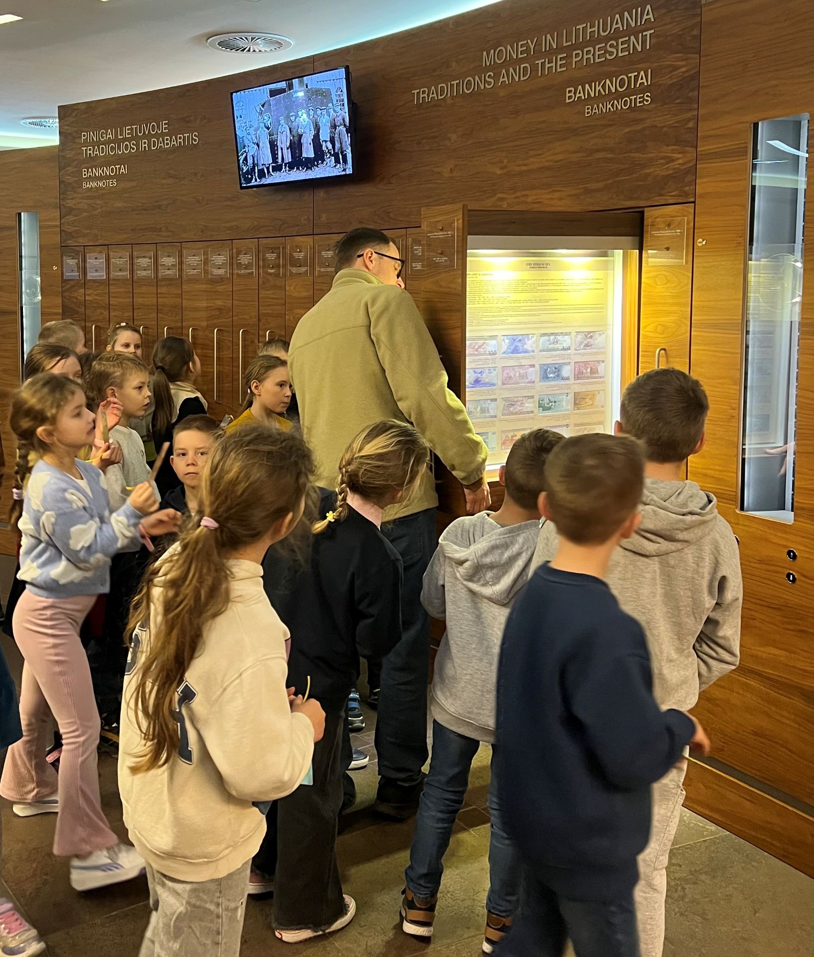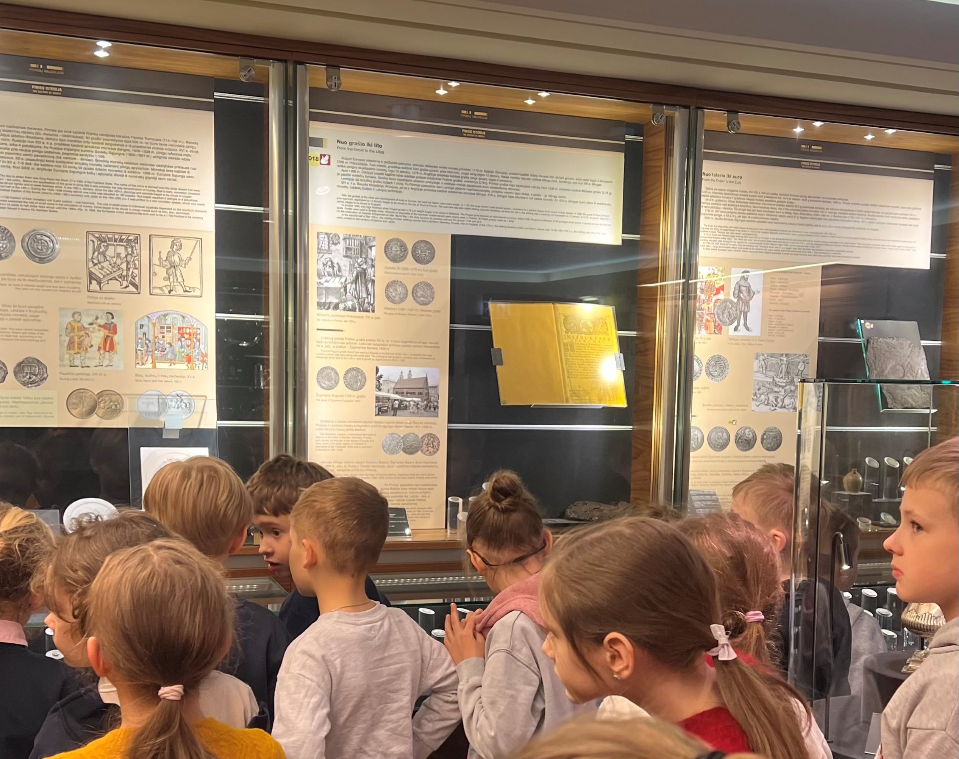 Balandžio 16 dieną 1A klasės mokiniai lankėsi Pinigų muziejuje ir dalyvavo edukacinėje pamokoje „Iš kur atsirado pinigai?“. Pirmokai susipažino su pinigų istorija nuo seniausių laikų, kai pinigai dar buvo prekės, iki naujųjų laikų, kai jie tapo metalo monetomis, popieriniais banknotais ir kredito kortelėmis. Gidas pasakojo apie pirmuosius savus Lietuvoje naudotus pinigus – sidabro lydinius – lietuviškus ilguosius (kartais vadinamus kapomis), kurių pradžia sietina su karaliaus Mindaugo valdymo metais. Mokiniai turėjo galimybę pamatyti įvairius banknotus ir monetas iš skirtingų laikotarpių. Pirmokai patys „nusikaldino“ skirtukus su skatiko atspaudu. Pamoka muziejuje visiems labai patiko.