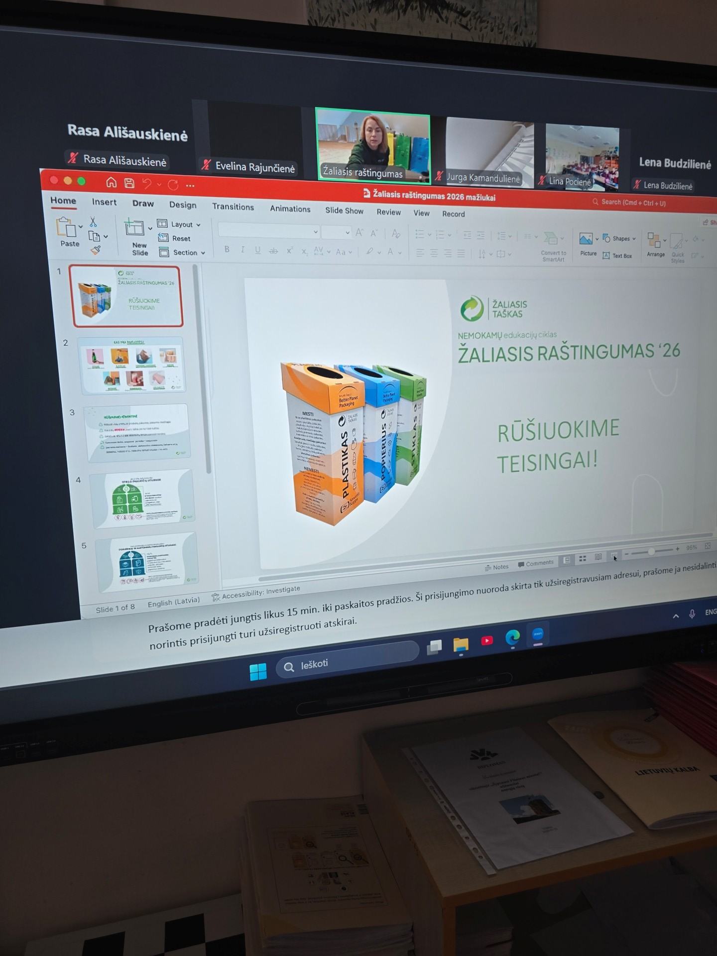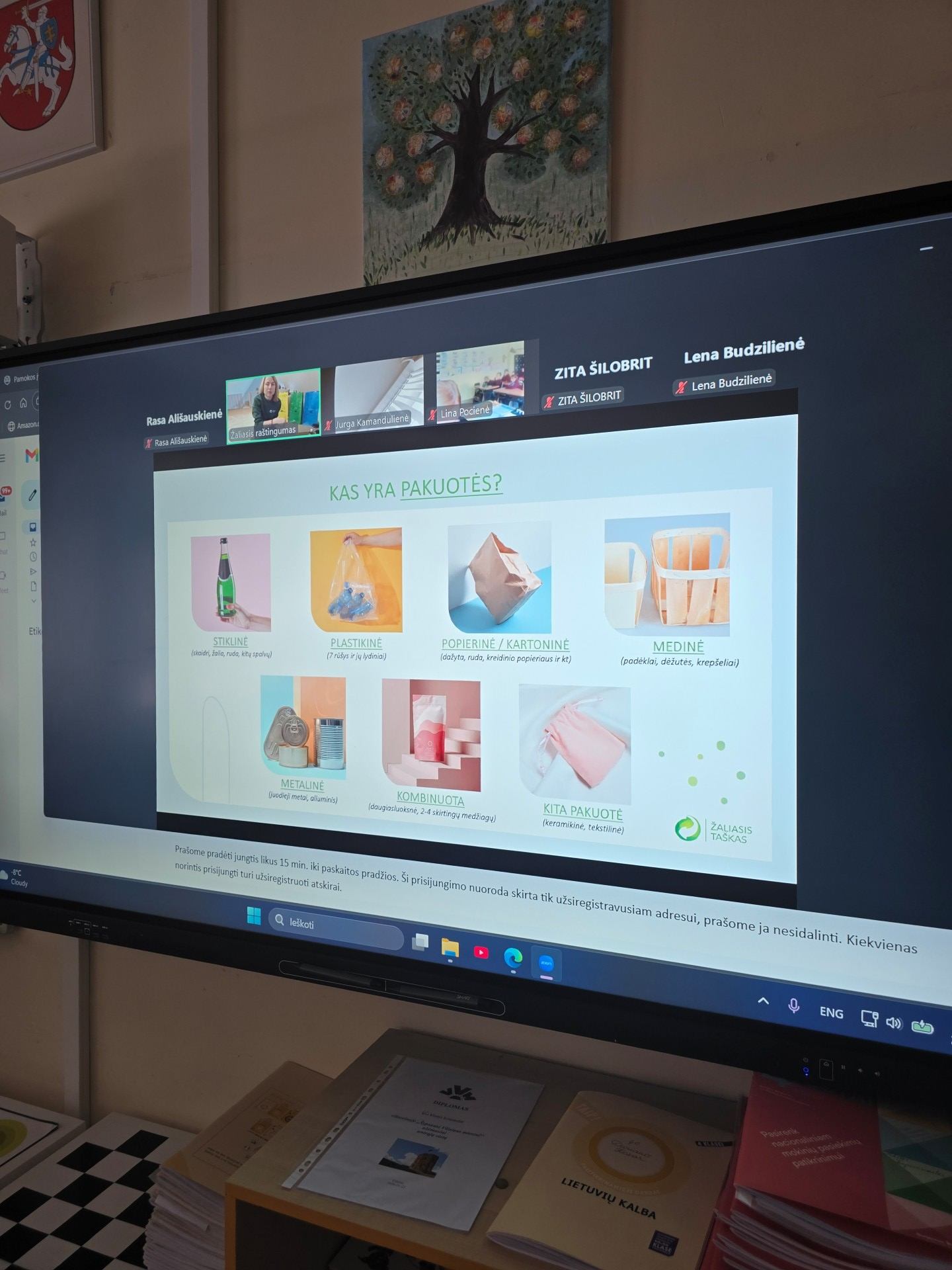 Sausio 29 d. 4C ir 4A  klasės dalyvavo nuotolinėje edukacinėje pamokoje „Rūšiuokime teisingai“, kurią organizavo pakuočių atliekų tvarkymo organizacija „Žaliasis taškas“ kaip dalį ciklo „Žaliasis raštingumas“. Lektorė labai išsamiai ir aiškiai pateikė visą informaciją apie atliekų rūšiavimą ir perdirbimą. Pamokoje dalyvavo labai daug pradinių klasių mokinių iš visos Lietuvos, nes tema yra labai svarbi – tinkamas atliekų rūšiavimas padeda saugoti aplinką, tausoti gamtos išteklius ir kurti tvaresnę ateitį. Mokiniai turėjo galimybę užduoti rūpimus klausimus, į kuriuos gavo detalius ir naudingus atsakymus, taip gilindami savo žinias apie aplinkos tausojimą ir atsakingą vartojimą.